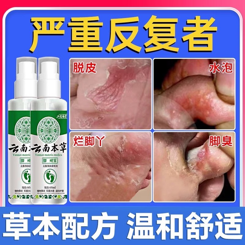 云南本草脚気喷雾止痒脱皮杀菌脚臭膏水泡烂脚丫真菌感染专用喷剂