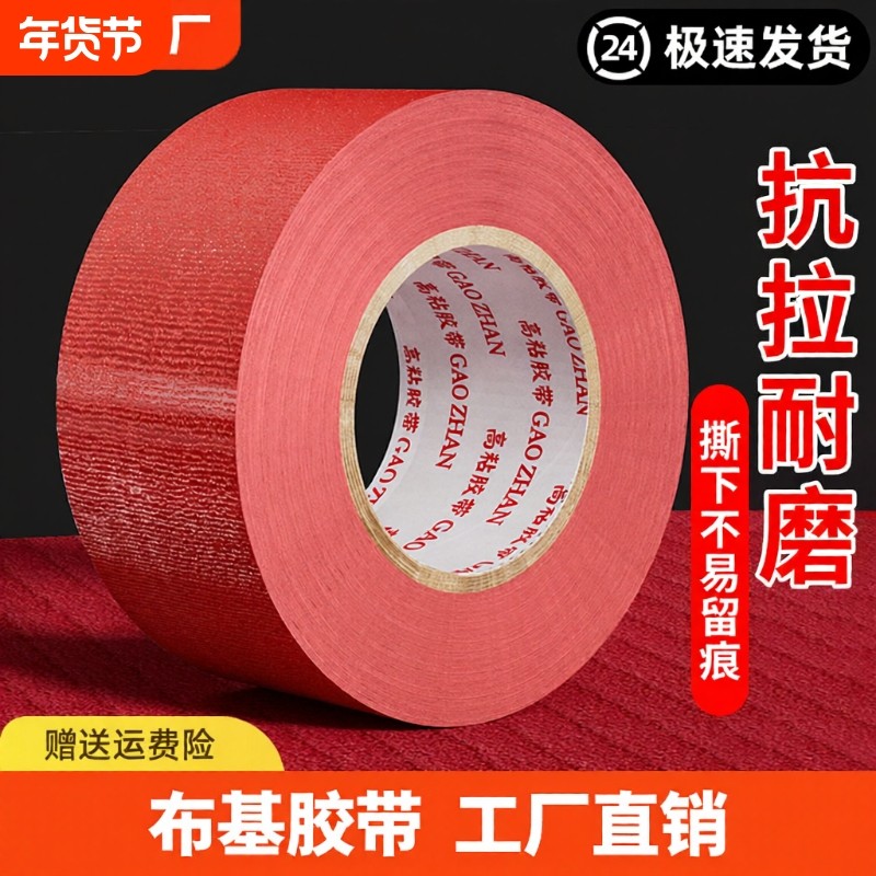 布基胶带单面高粘加宽强力红色50米彩色大力胶贴地膜装修遮蔽警示地板保护婚庆舞台红毯固定加厚防水高粘性批