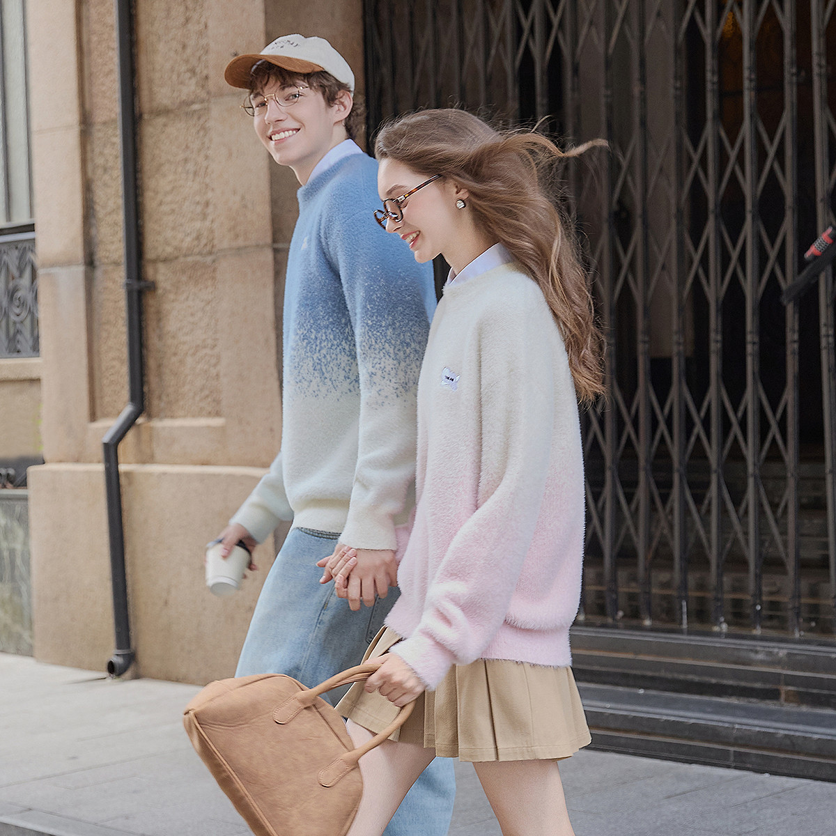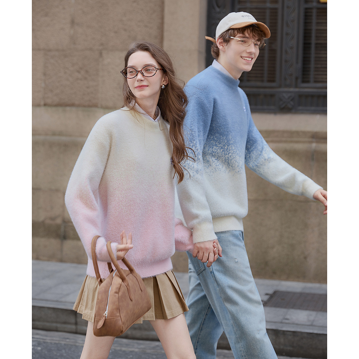 唐狮秋冬季新款情侣毛衣女仿海马绒圆领套头渐变超好看毛线衫TM