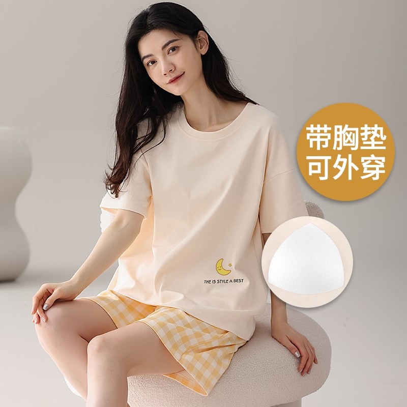 带胸垫睡衣女夏季2025年新款夏天短袖薄款女款家居服外穿套装短裤