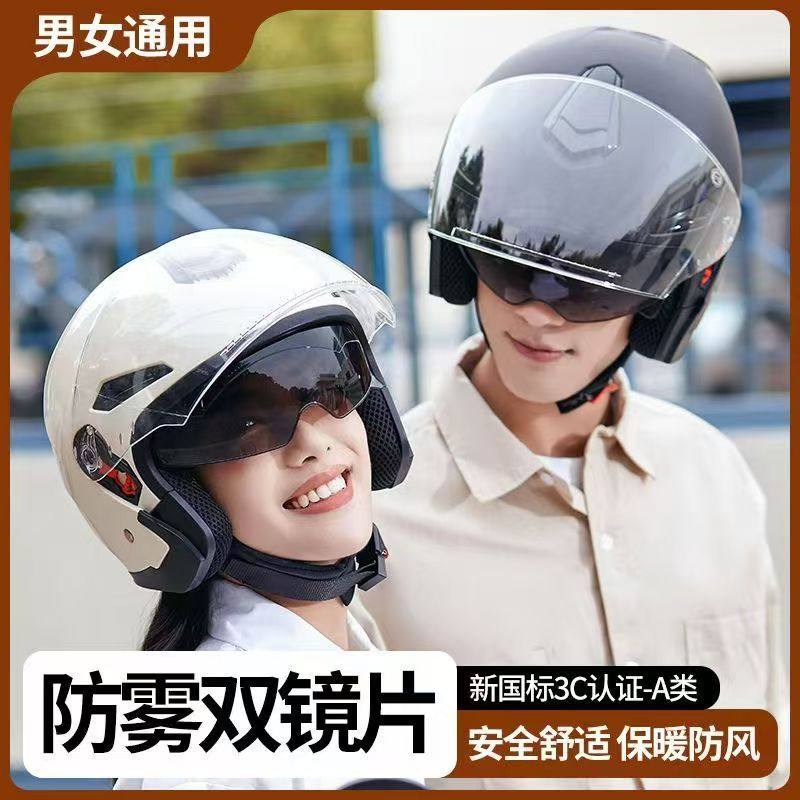 新国标3c认证电动车头盔电瓶摩托车安全帽夏季半盔四季通用镜片