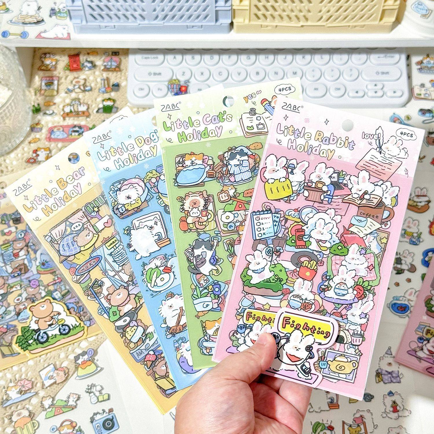 悦真可爱卡通动物贴纸套装手账手抄报手机壳创意装饰多款立体贴纸