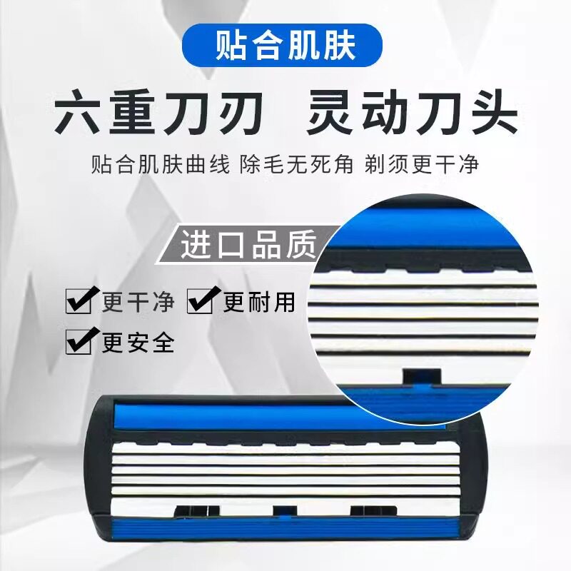 进口6层刀片剃须刀利亚刮胡刀手动刀片六层刀头男刮毛刮头胡子刀