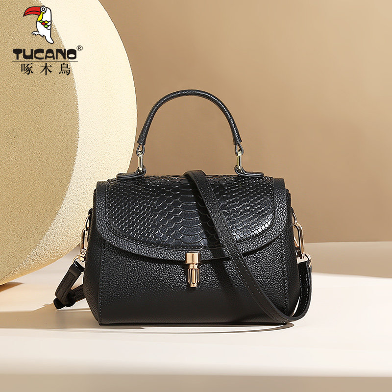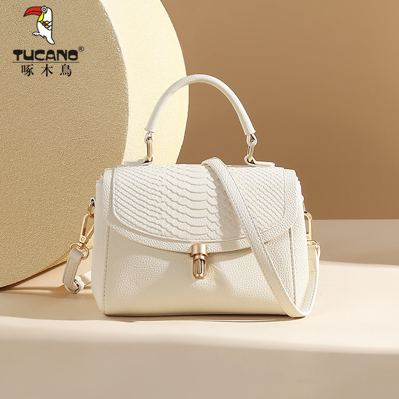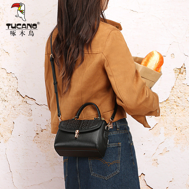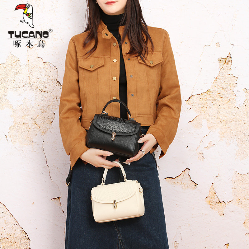 [特卖]啄木鸟真皮手提小方包2025新款轻奢简约时尚高级感单肩斜挎