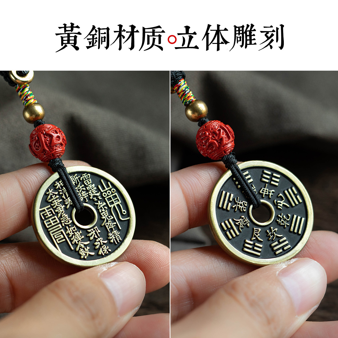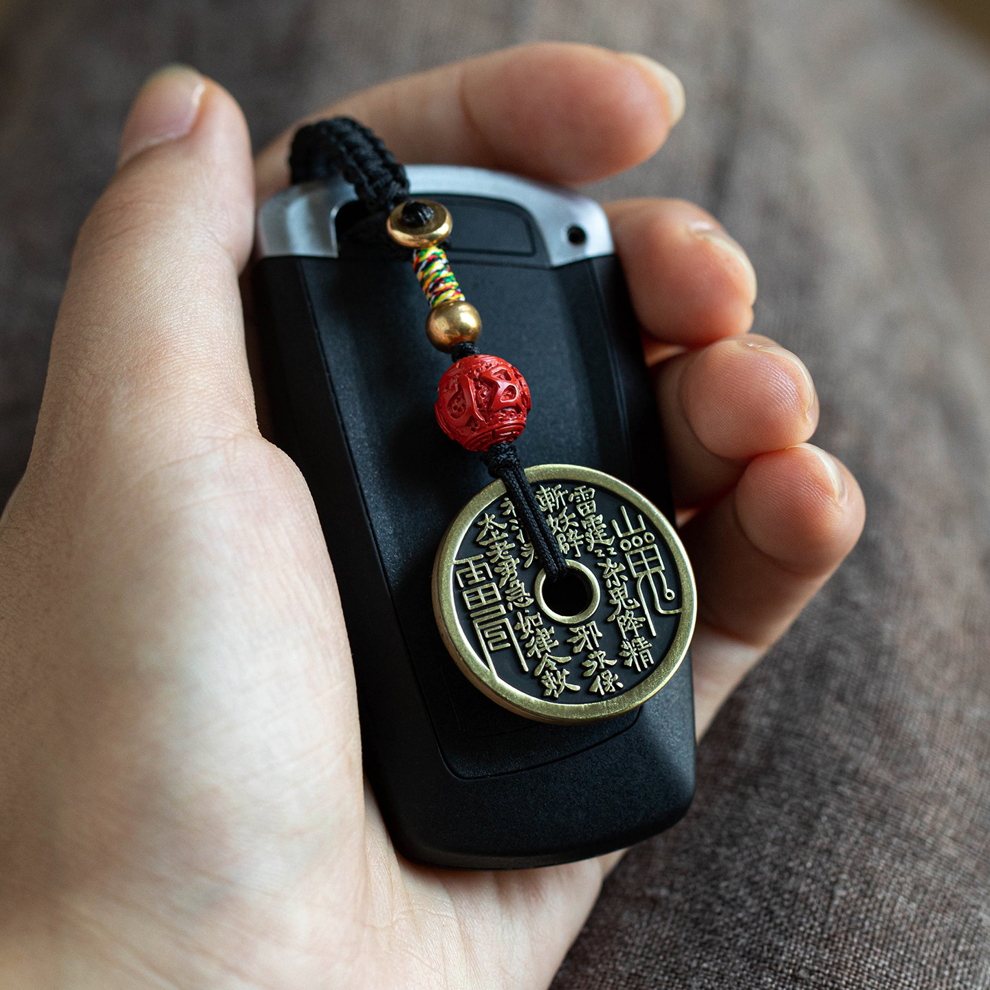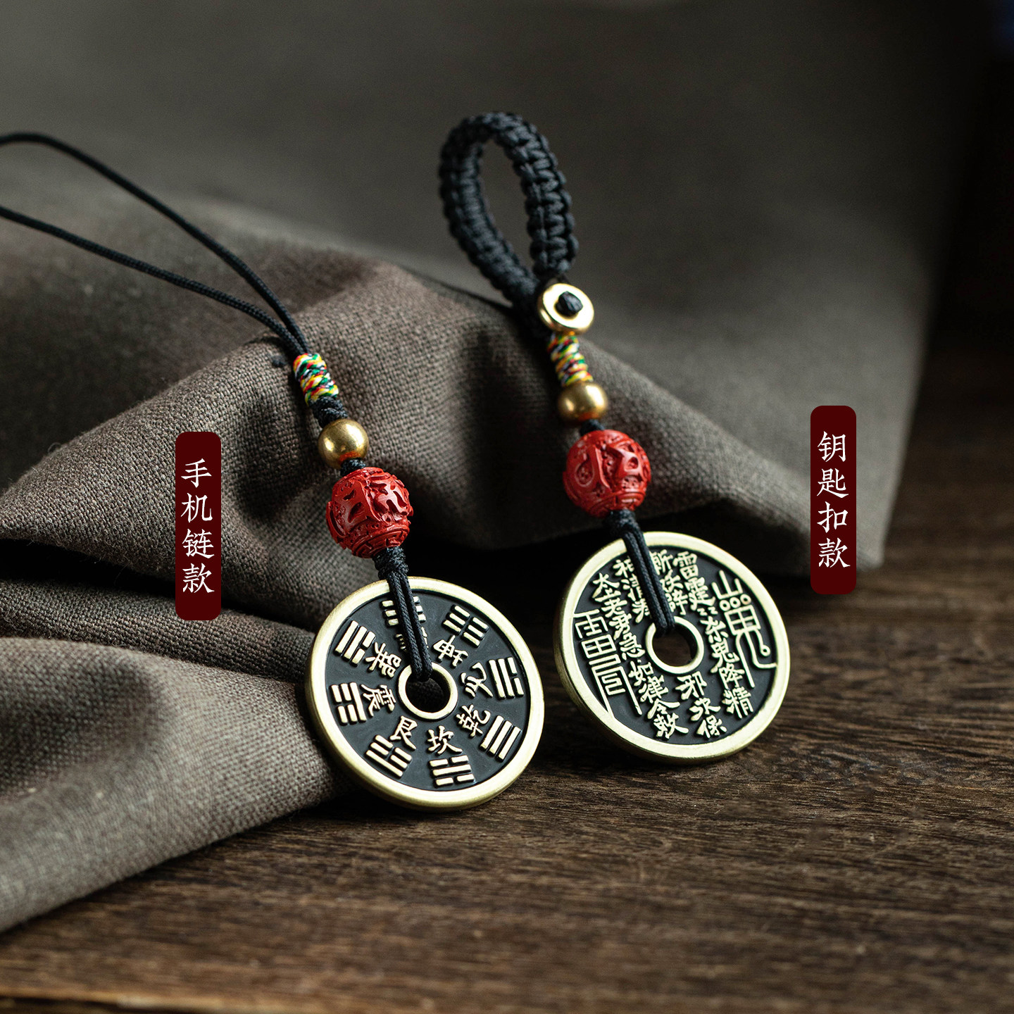 大善堂实心黄铜山鬼花钱手机链新中式挂件立体雕刻朱砂挂饰马年礼