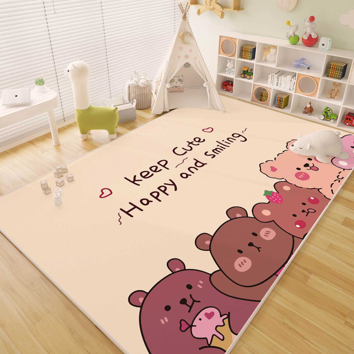 卡通客厅地垫防水可擦免洗防摔爬行垫儿童草莓熊卧室轻奢入户家用