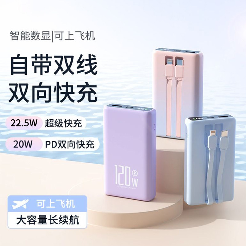 【3C认证】2025新款充电宝超级快充自带线20000毫安超大容量超薄小巧便携正品PD20W移动电源适用苹果华为专用