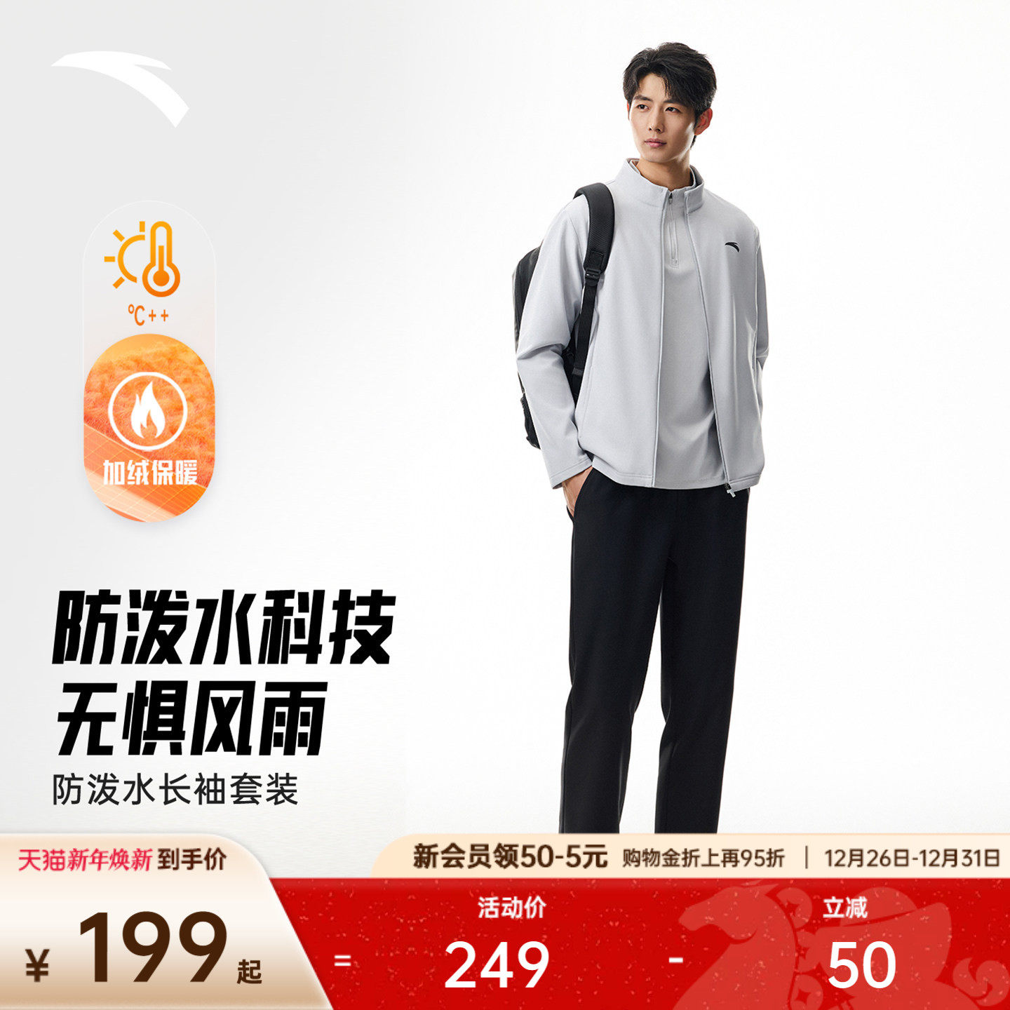 安踏长袖运动套装男士2025冬季新款防泼水立领外套运动长裤两件套