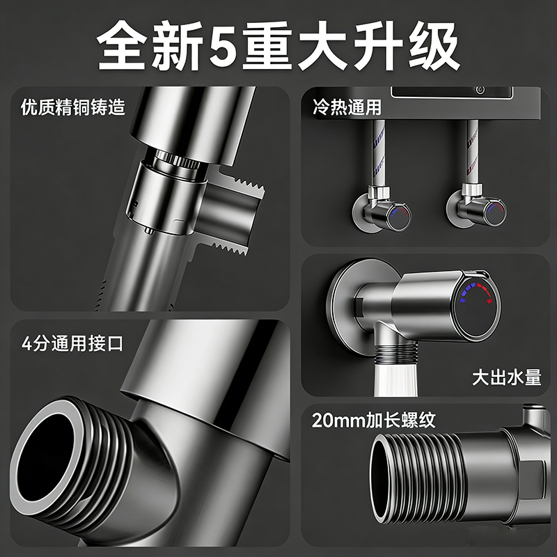 全铜卫浴角阀三角阀冷热水通用全阀门开关4分水阀一进二出分水器