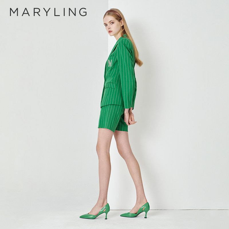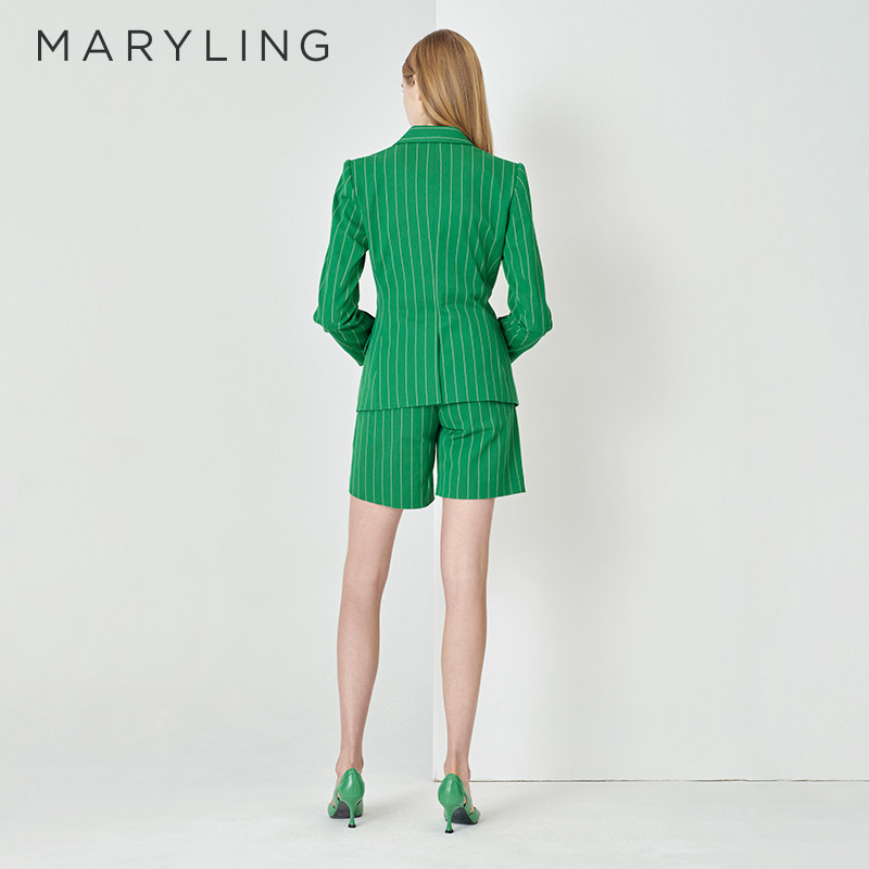 MARYLING玛俪琳春秋新品绿底白条纹百慕大短裤A1DBW58010