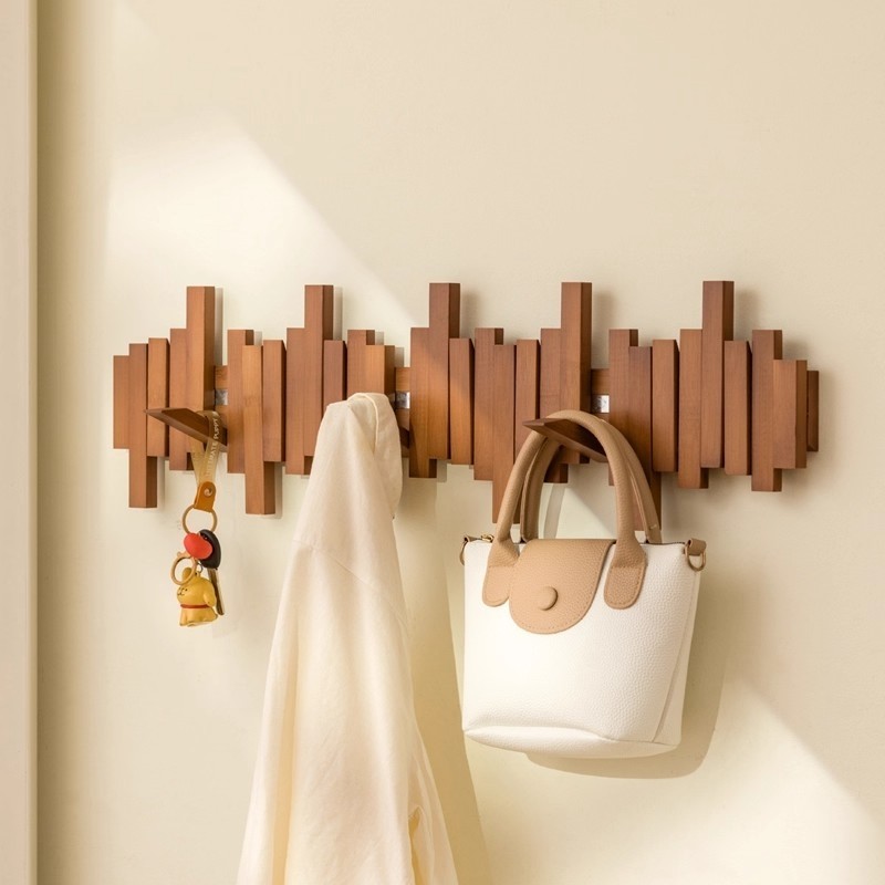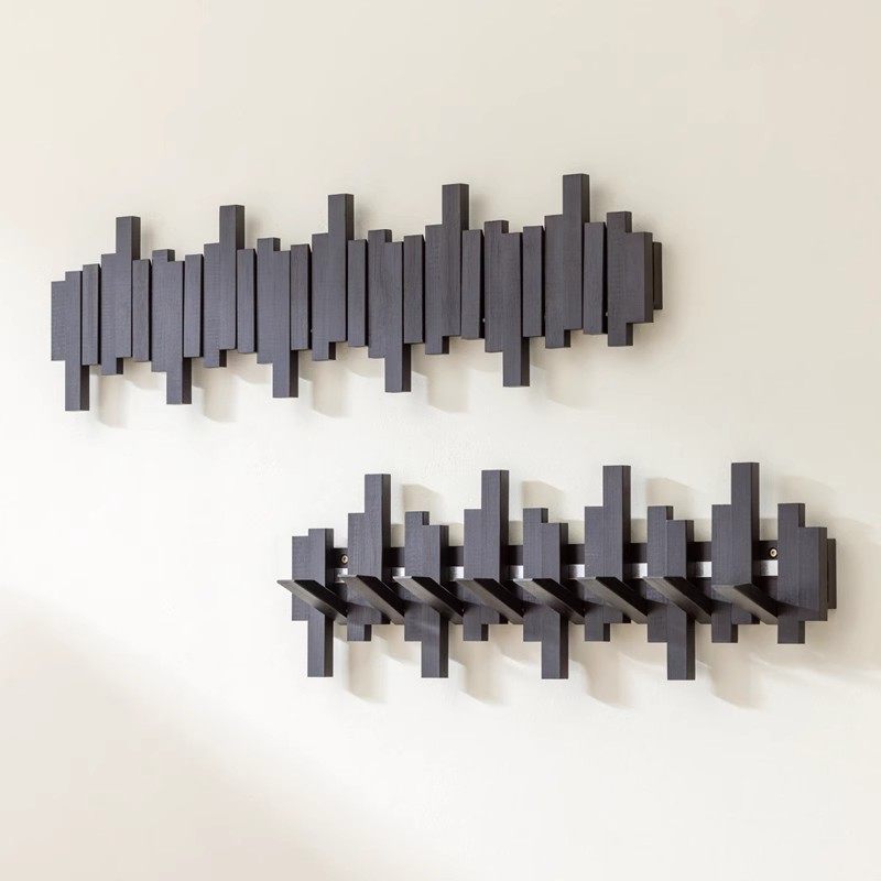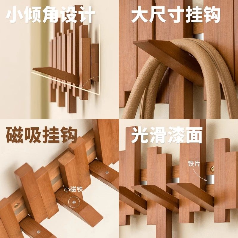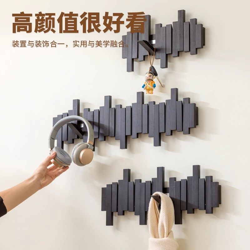 实木钢琴键挂衣架壁挂卧室玄关入户置物免打孔衣帽架墙面客厅黑色
