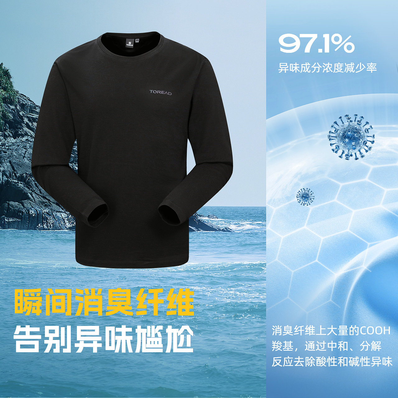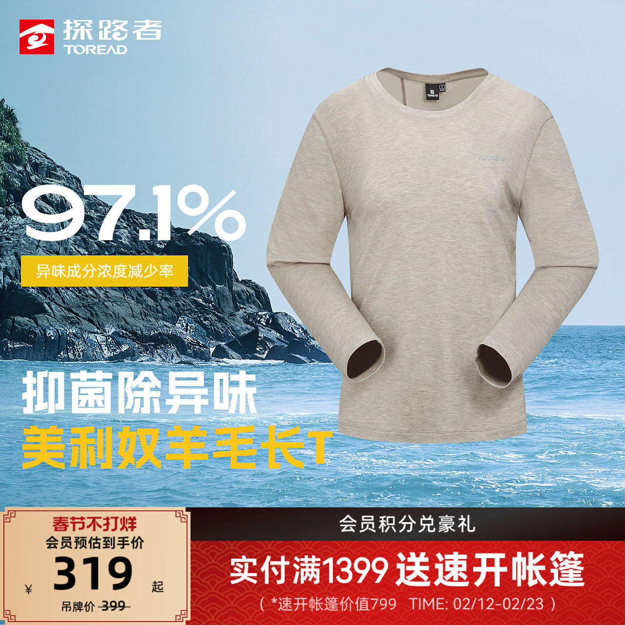 探路者功能长袖T恤男抑菌除味吸湿快干美利奴羊毛长袖保暖上衣女