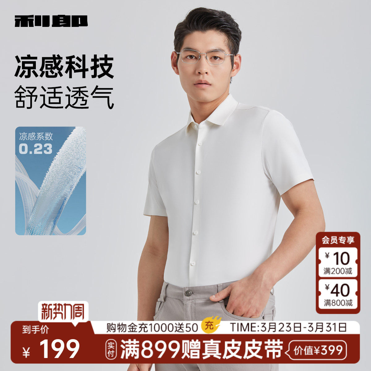 【凉感透气】利郎官方短袖衬衫男士商务纯色夏季新款冰丝衬衣男