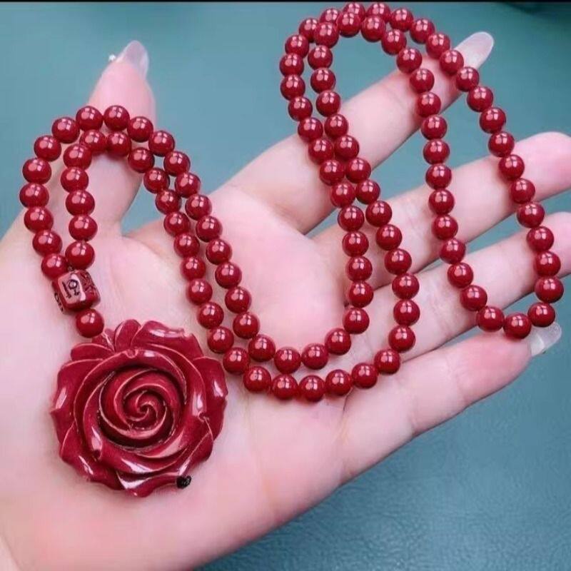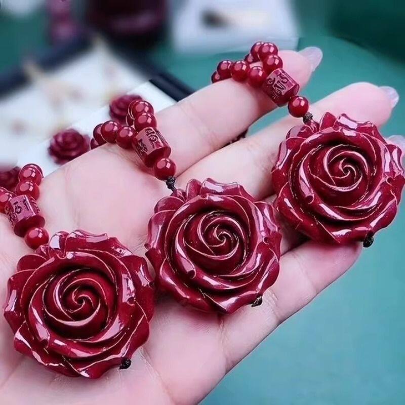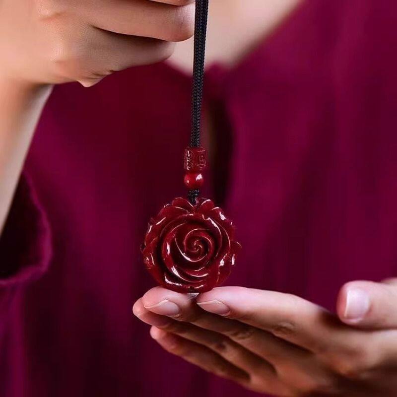 双面玫瑰吊坠时尚简约个性朱砂玫瑰项链吊坠锁骨装饰百搭项坠