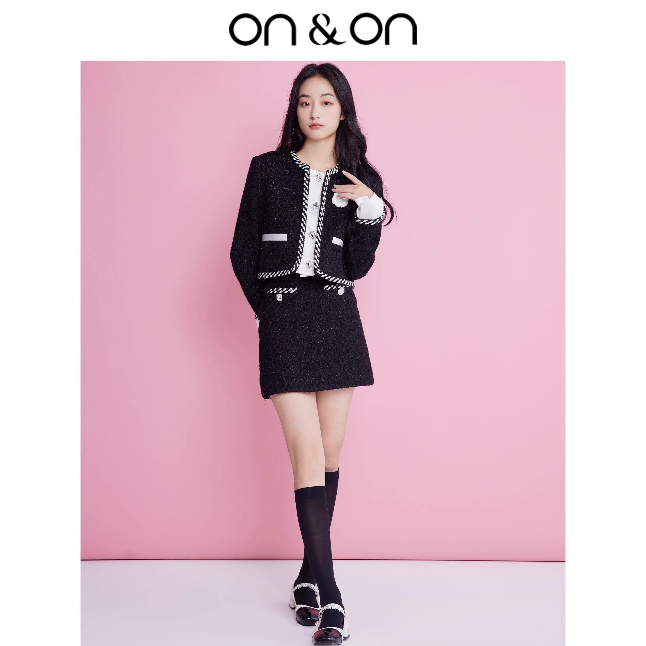 ON&ON/安乃安2026春季新款撞色编织小香风假两件羊毛时尚套装