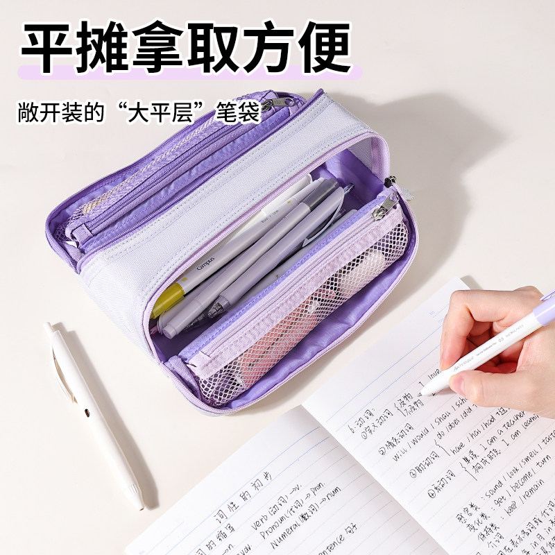 日本KOKUYO国誉Campus双拉链笔袋大容量文具盒多功能分类收纳磁吸设计可平摊收纳包学生文具