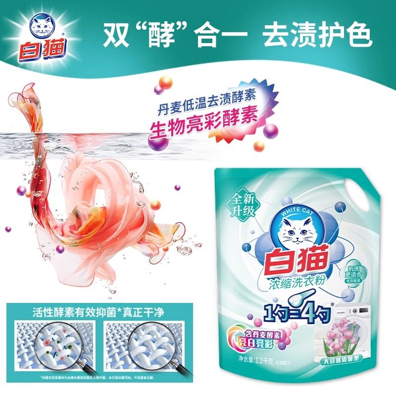 白猫浓缩洗衣粉去顽渍不伤衣低泡易漂家庭装家用实惠机洗手洗衣粉