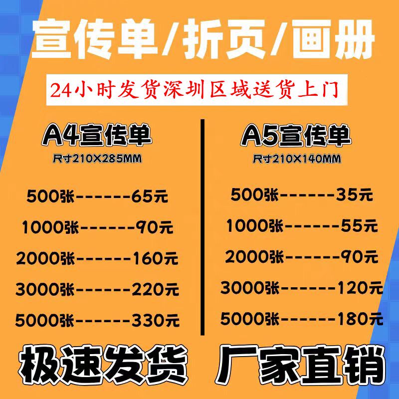 宣传单印制A4双面彩印黑白广告彩页菜单海报对折三折页画册骑马钉
