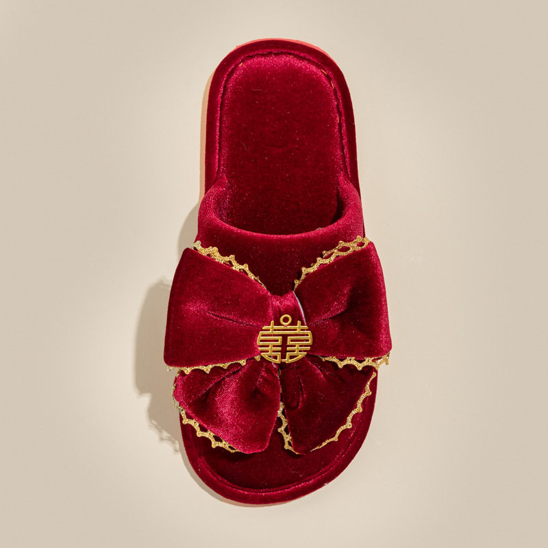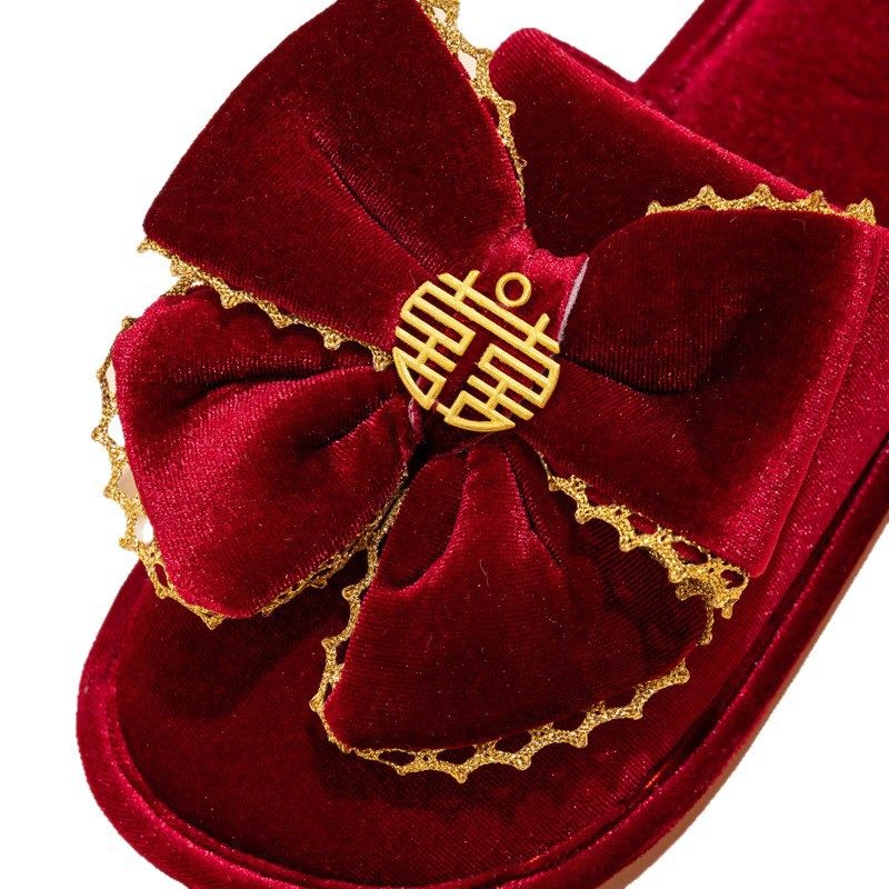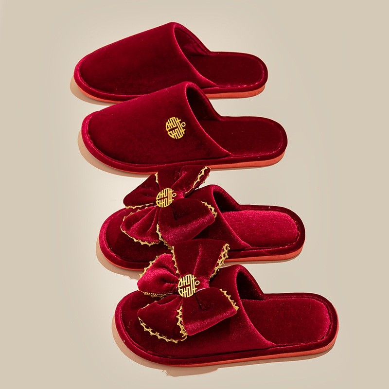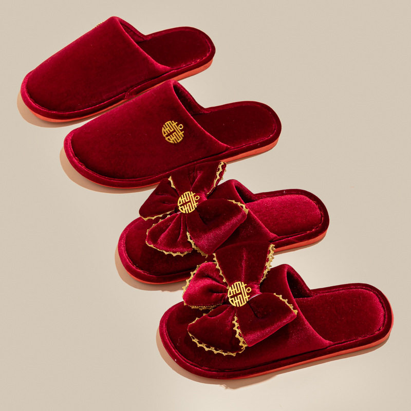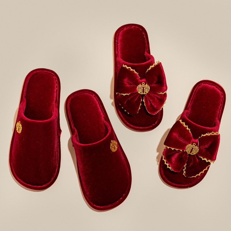 结婚拖鞋喜庆红色一对新婚新娘陪嫁高级感包头厂家直销一件代发