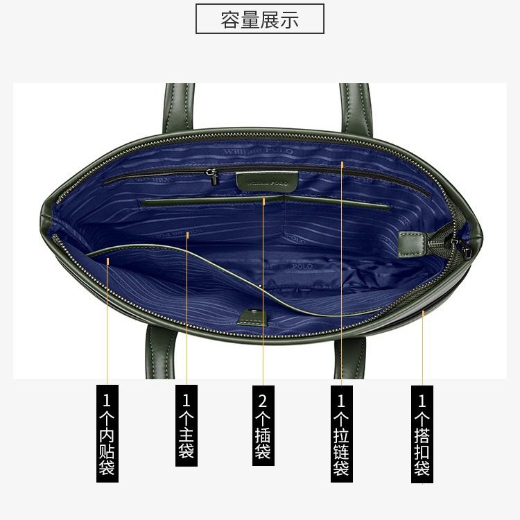 英皇保罗新款简约公文包男士包真皮办公商务休闲大容量多功能手提