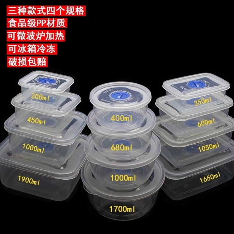 保鲜盒食品级冰箱圆形带盖密封盒饭盒塑料微波炉套装便当盒水果盒