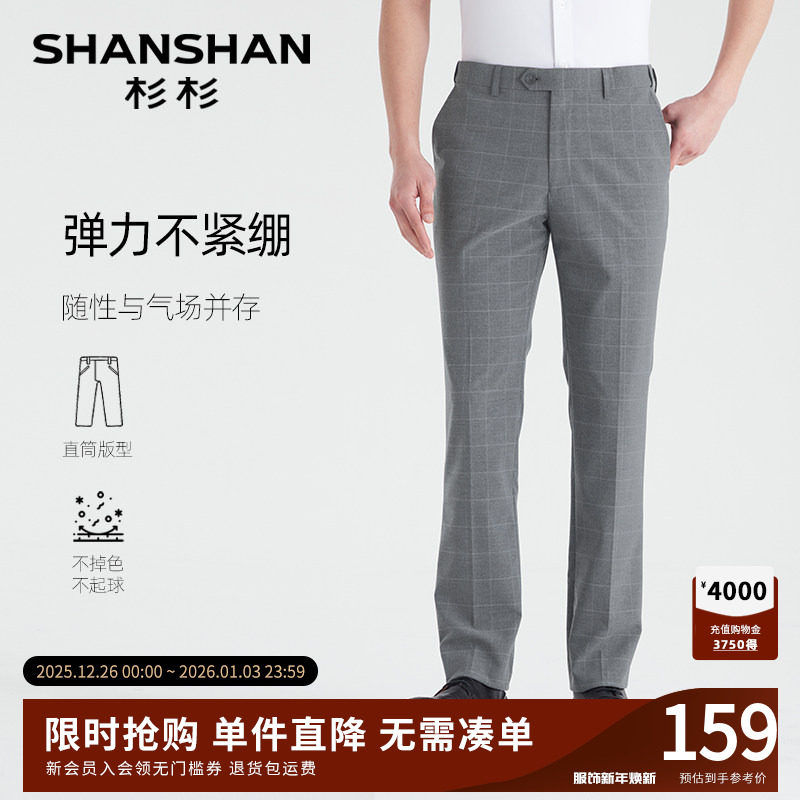 【弹力0束缚】SHANSHAN杉杉休闲裤男格子2025夏新款中腰直筒西裤