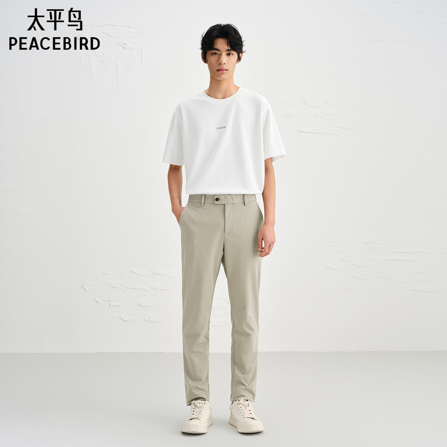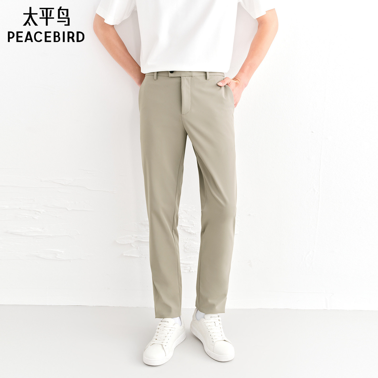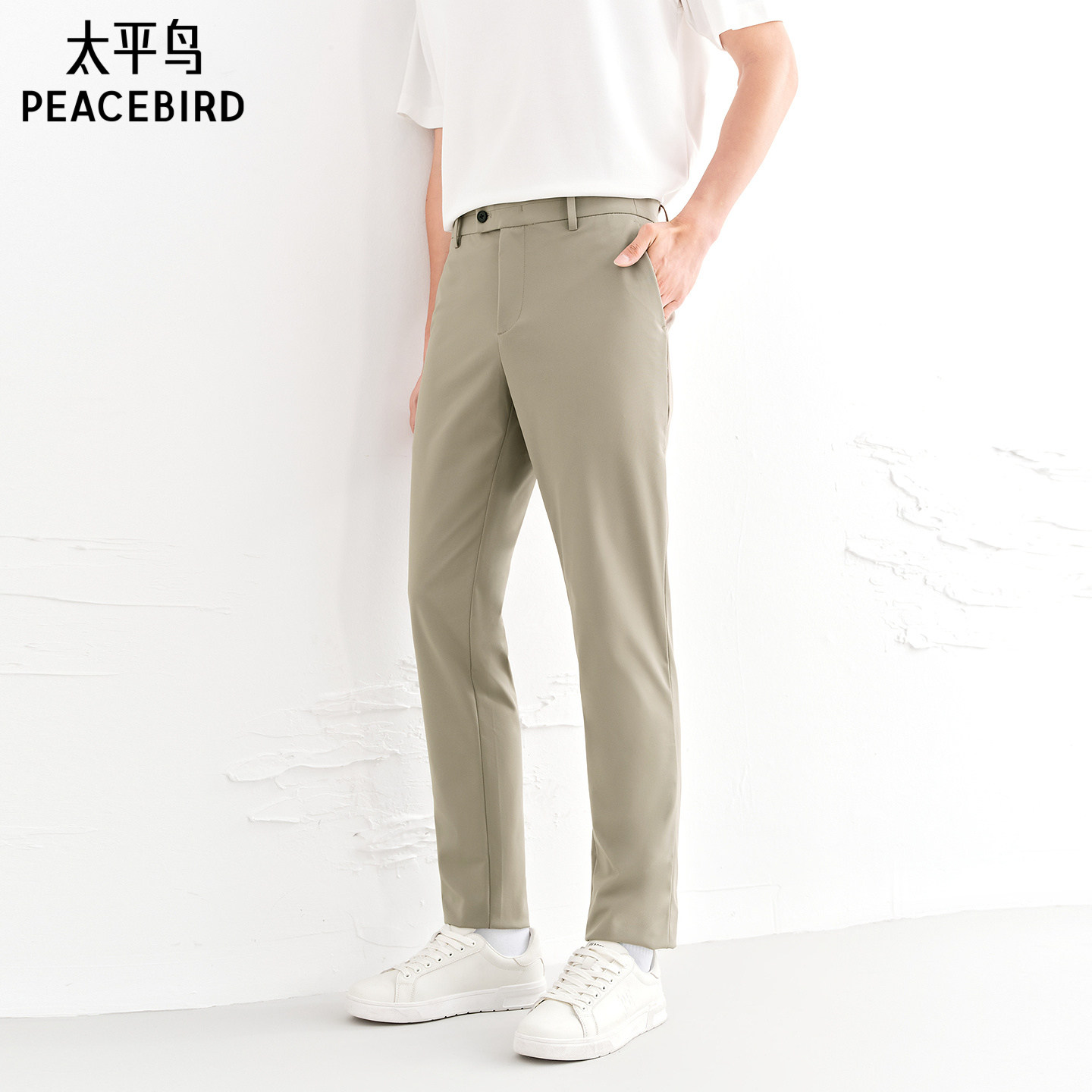 太平鸟男装 休闲裤男修身秋季卡其色柔软长裤青年商务西裤