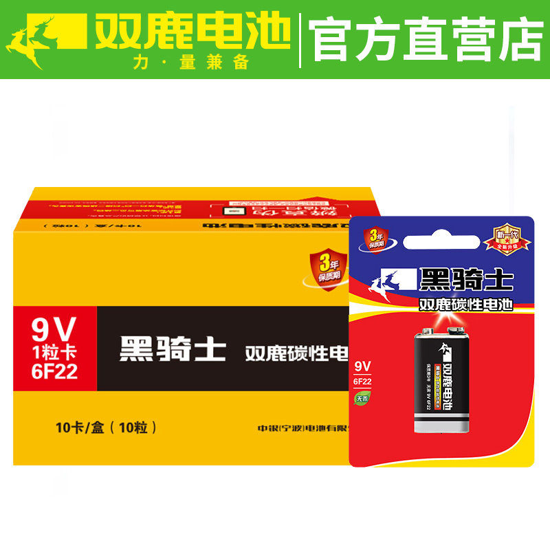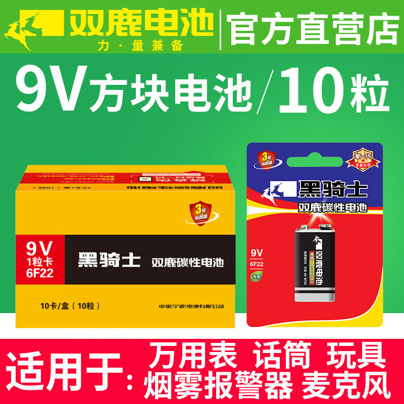 双鹿9V电池九伏6F22碳性方块话筒麦克风仪器万用表烟雾报警器10节音响玩具麦克风遥控器体温枪适用方形9V电池
