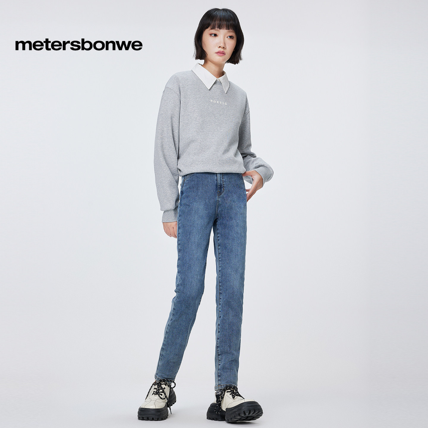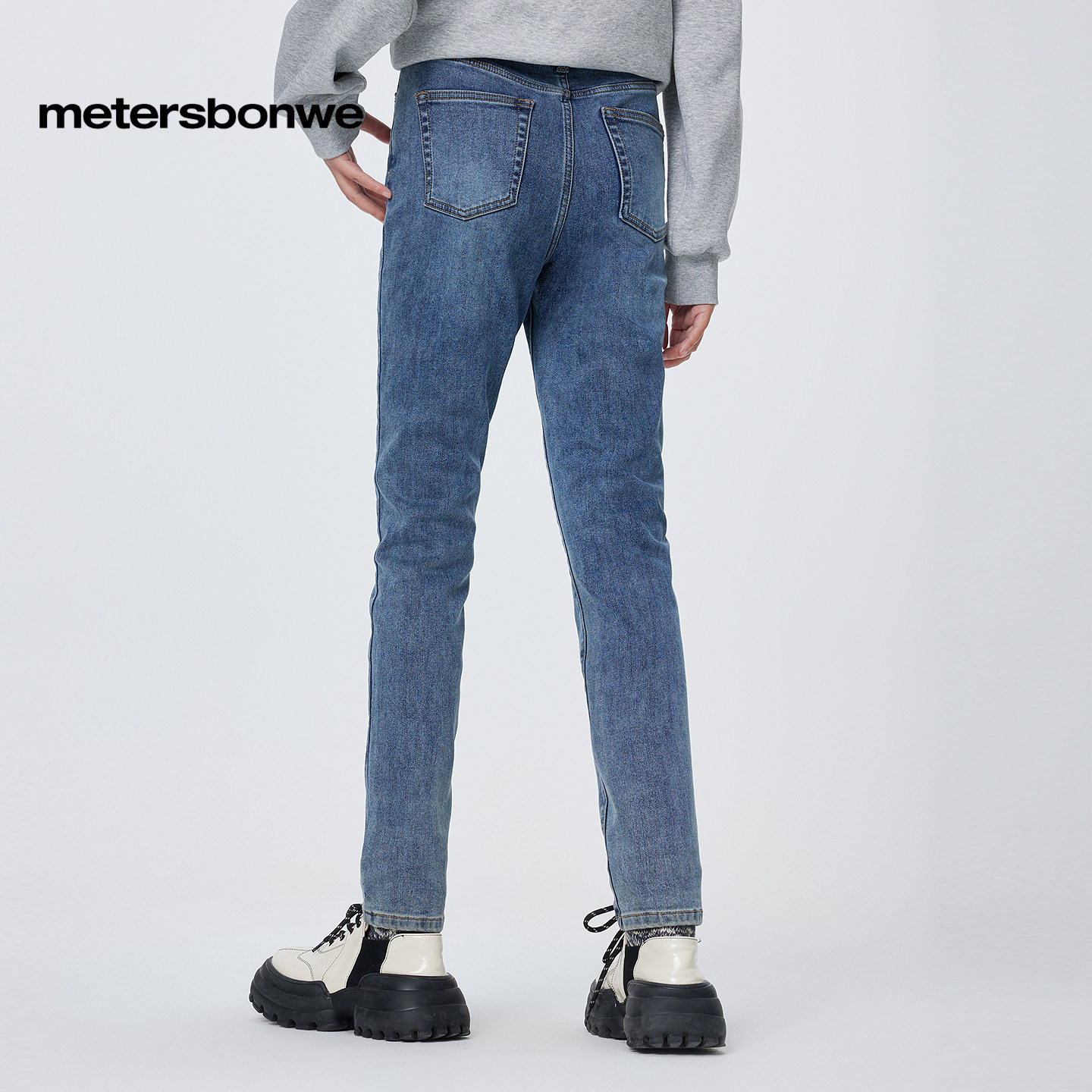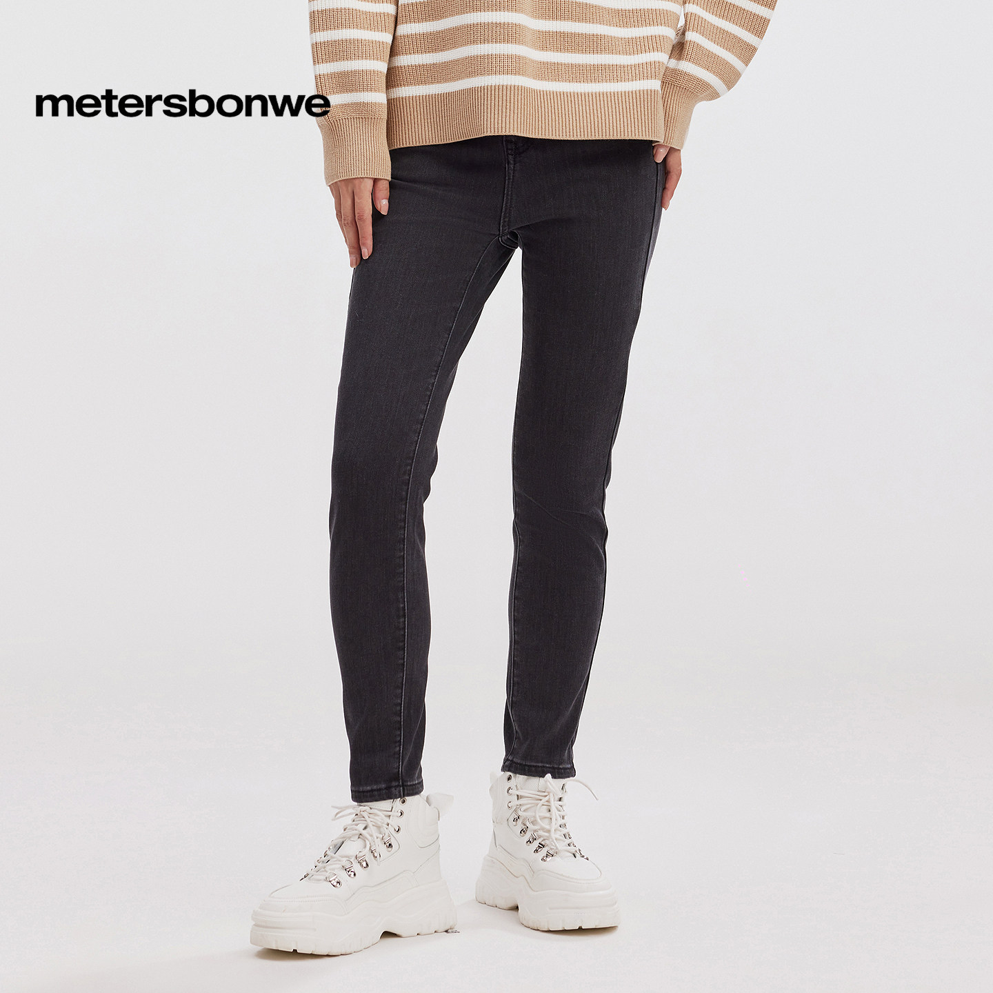 美特斯邦威牛仔裤女士甜酷显瘦提臀紧身小脚牛仔裤厚款弹力长裤