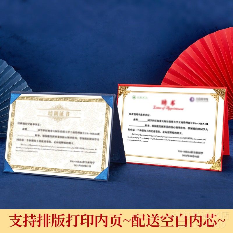 营养师证书外壳横款封面套定做证书套结业获奖大赛免费打印蓝红色