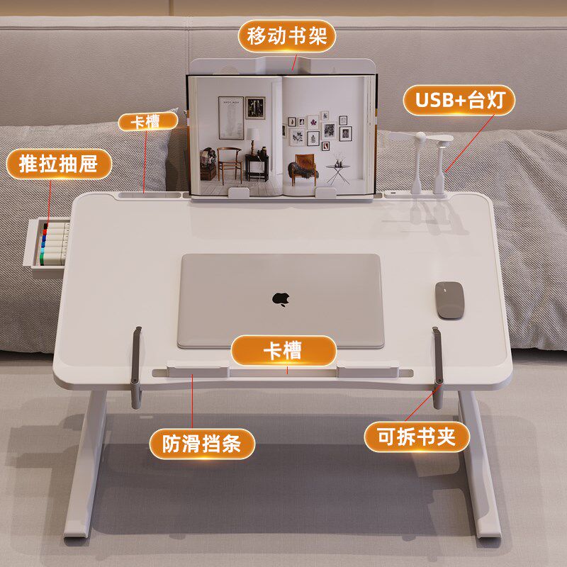 床上小桌子学习桌可折叠升降电脑桌书桌宿舍学生写字床用家用卧室坐地飘窗懒人笔记本电脑支架大号办公小桌板