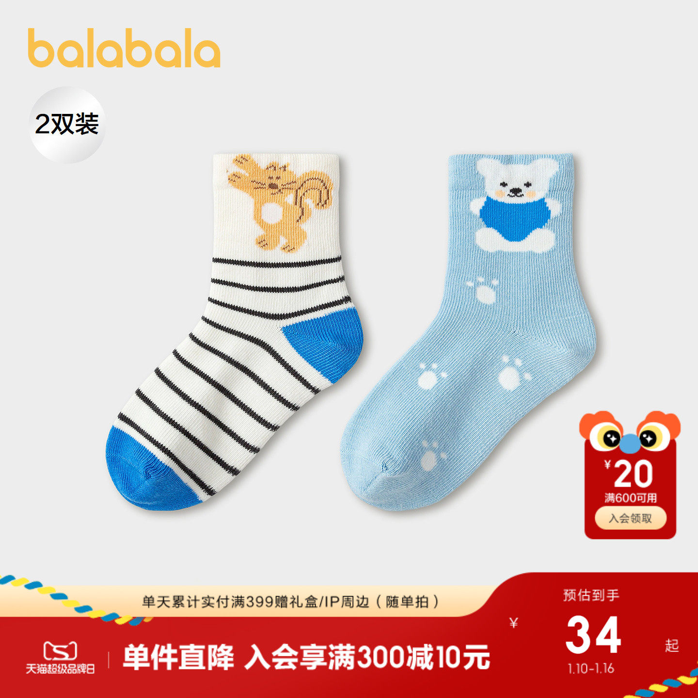 【商场同款】巴拉巴拉儿童袜子春秋男棉袜中筒袜萌趣软软袜两双装