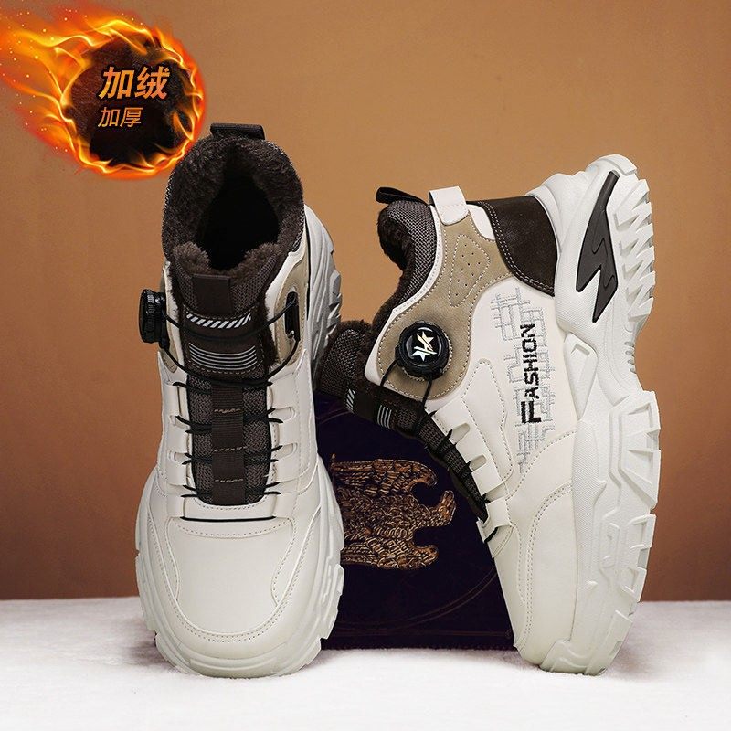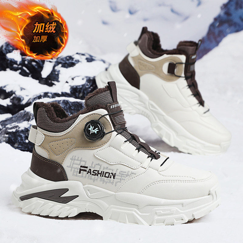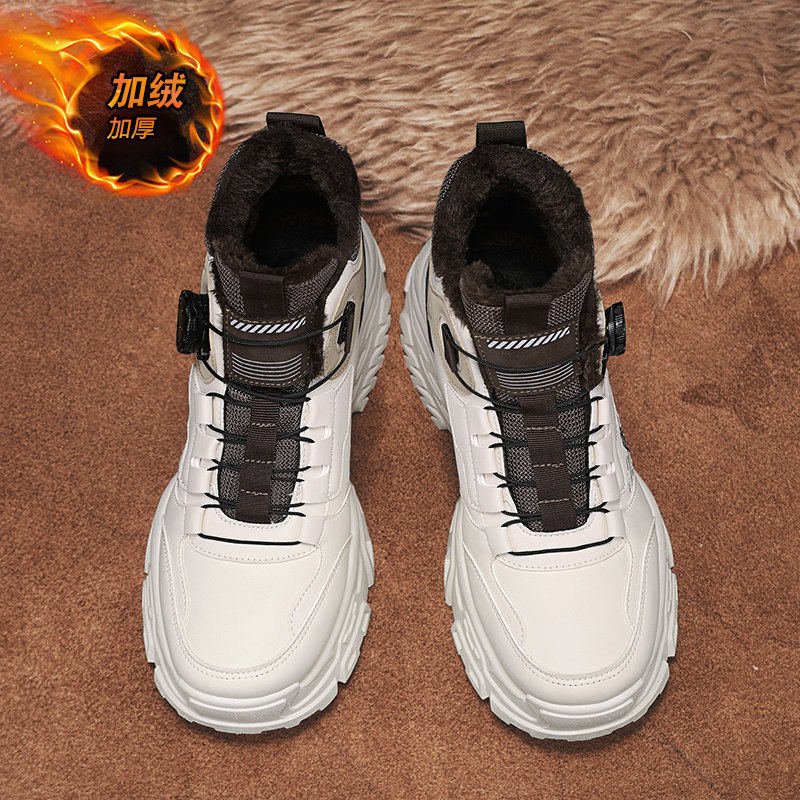 男鞋2025新款冬季加绒保暖高帮棉鞋青少年厚底运动休闲工装老爹鞋