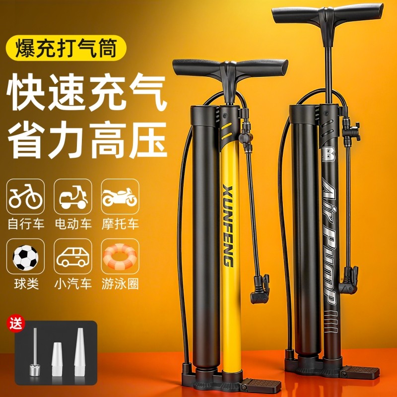 新款加粗双泵爆冲打气筒自行车电动车高喷力充气泵小汽车家用一体
