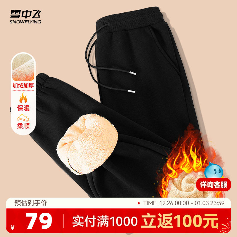 雪中飞仿羊羔绒裤子男冬季2025加绒加厚束脚卫裤超厚休闲运动裤PC