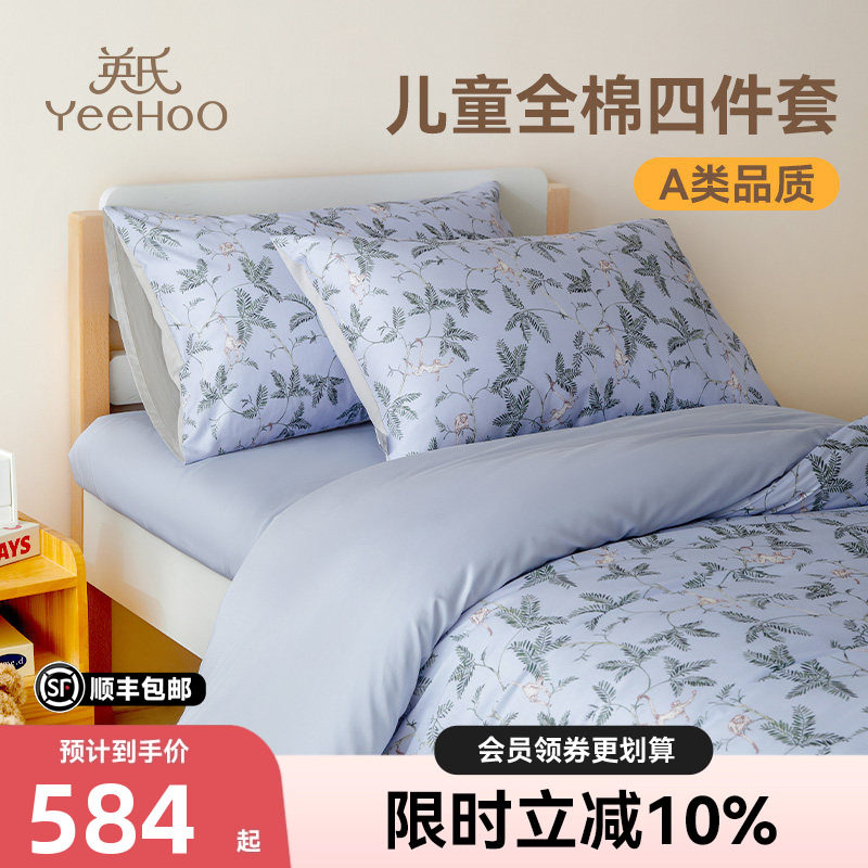 英氏初棉儿童四件套纯棉床品全棉水洗被套床上用品床单林间密语