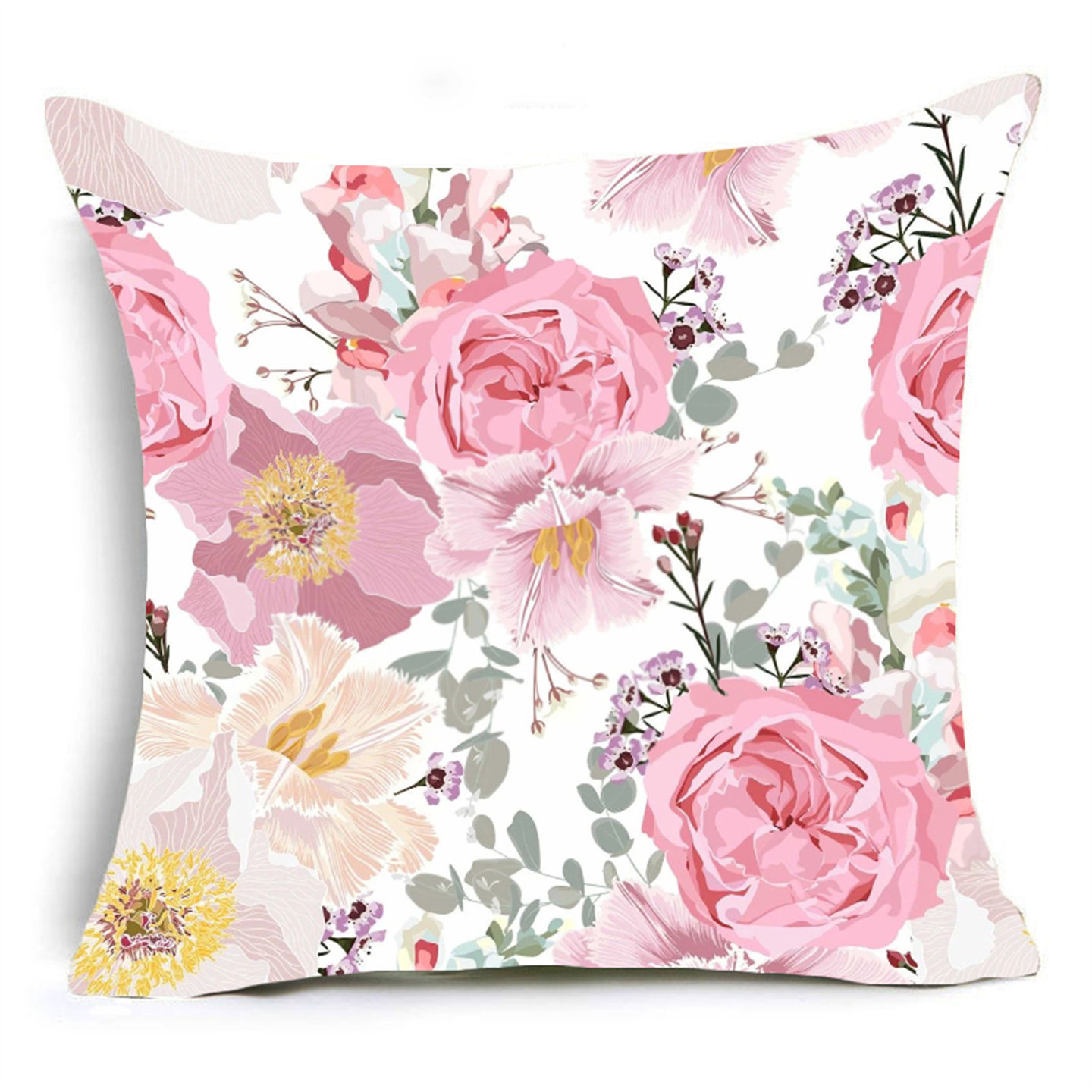 法式小花朵抱枕靠垫腰枕客厅软装毛绒靠枕不含芯绒面飘窗靠垫套