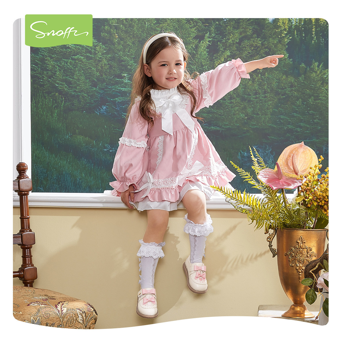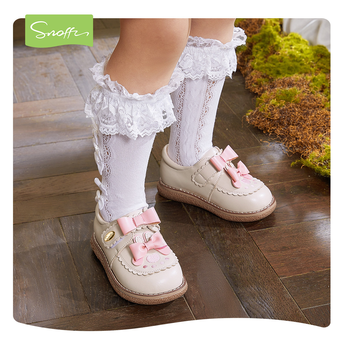 斯纳菲女童皮鞋公主鞋春秋儿童女孩蝴蝶结白色洛丽塔软底宝宝单鞋