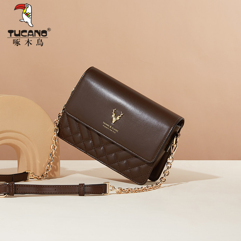 南风Chio2nd 磨砂牛皮栗木奶霜小方包冬季质感通勤链条单肩斜挎包