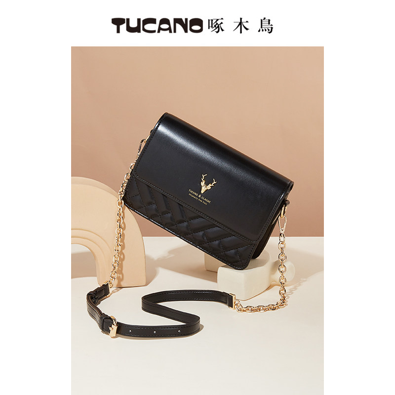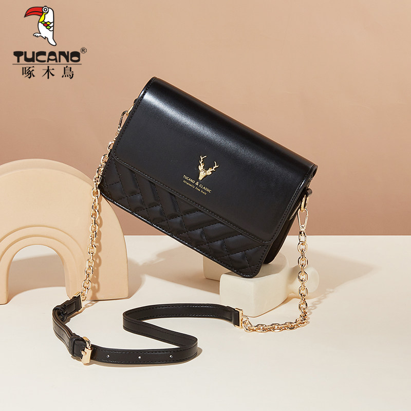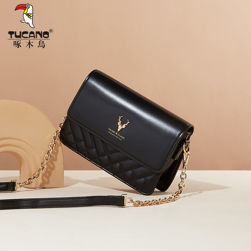 啄木鸟包包女2025新款法式小众设计鹿头高级感链条单肩斜挎小方包
