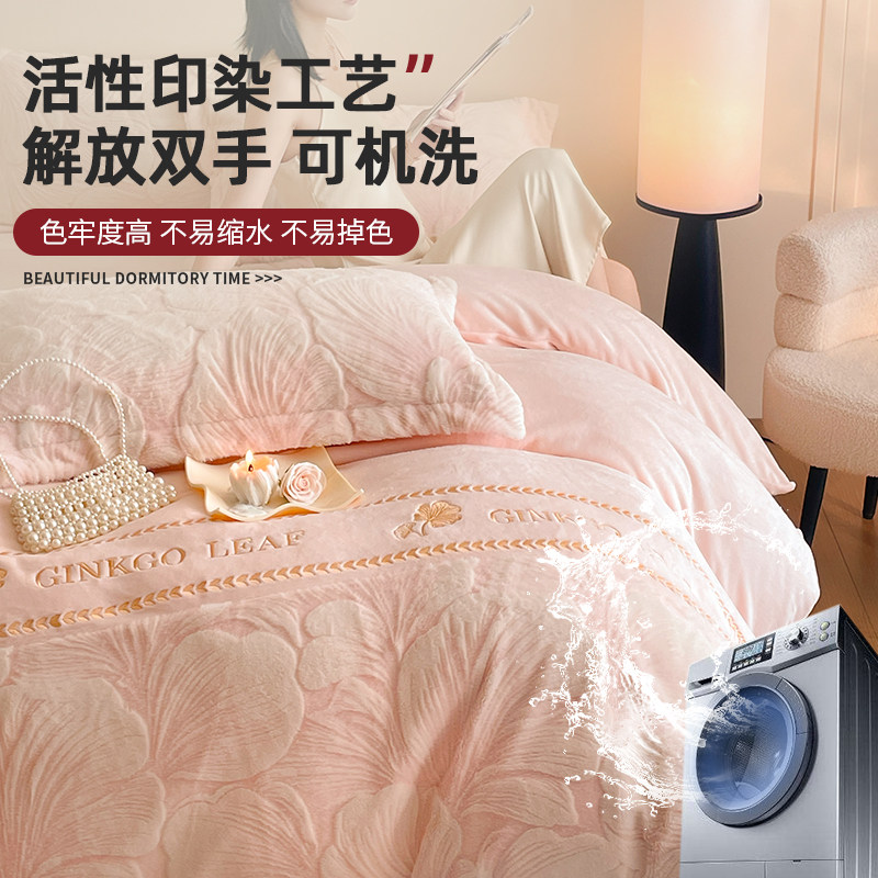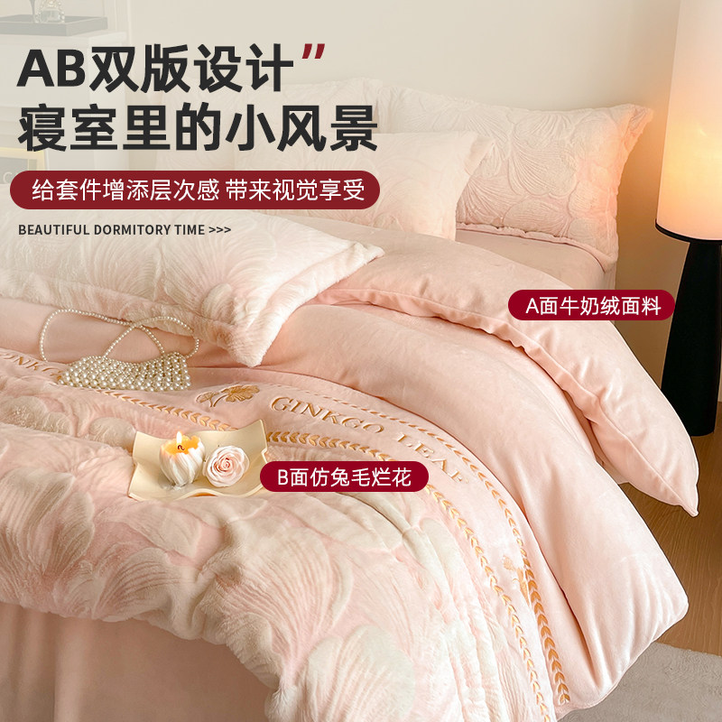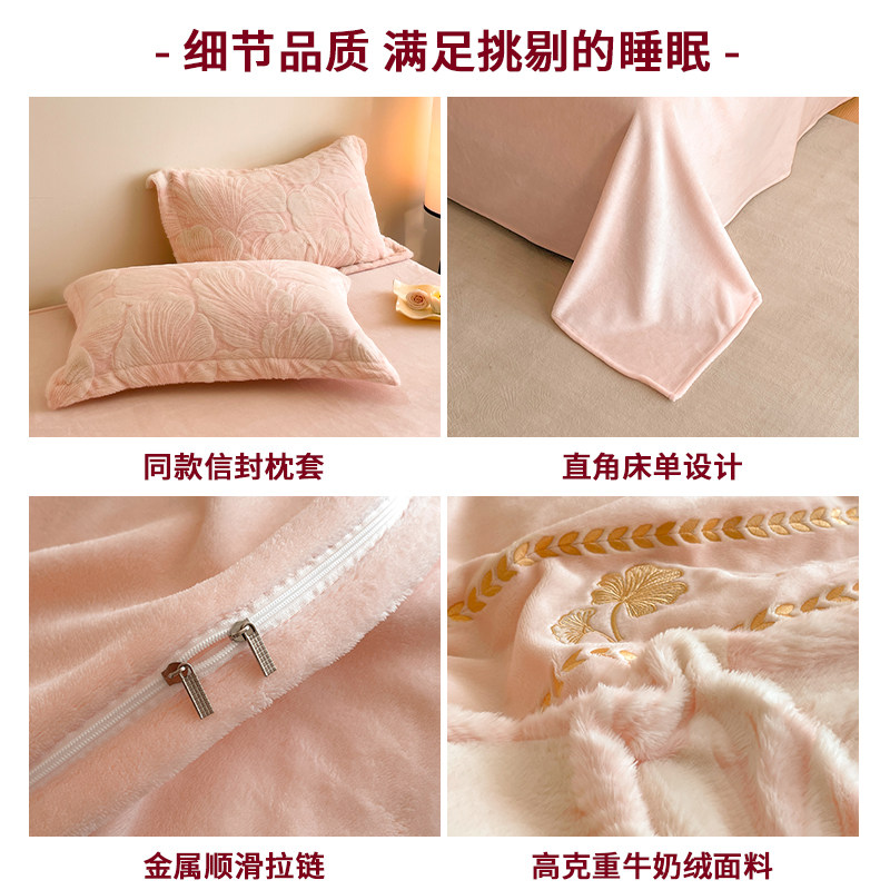 都市丽人雕花牛奶绒四件套2025新款冬季加厚珊瑚绒被套床单法兰绒