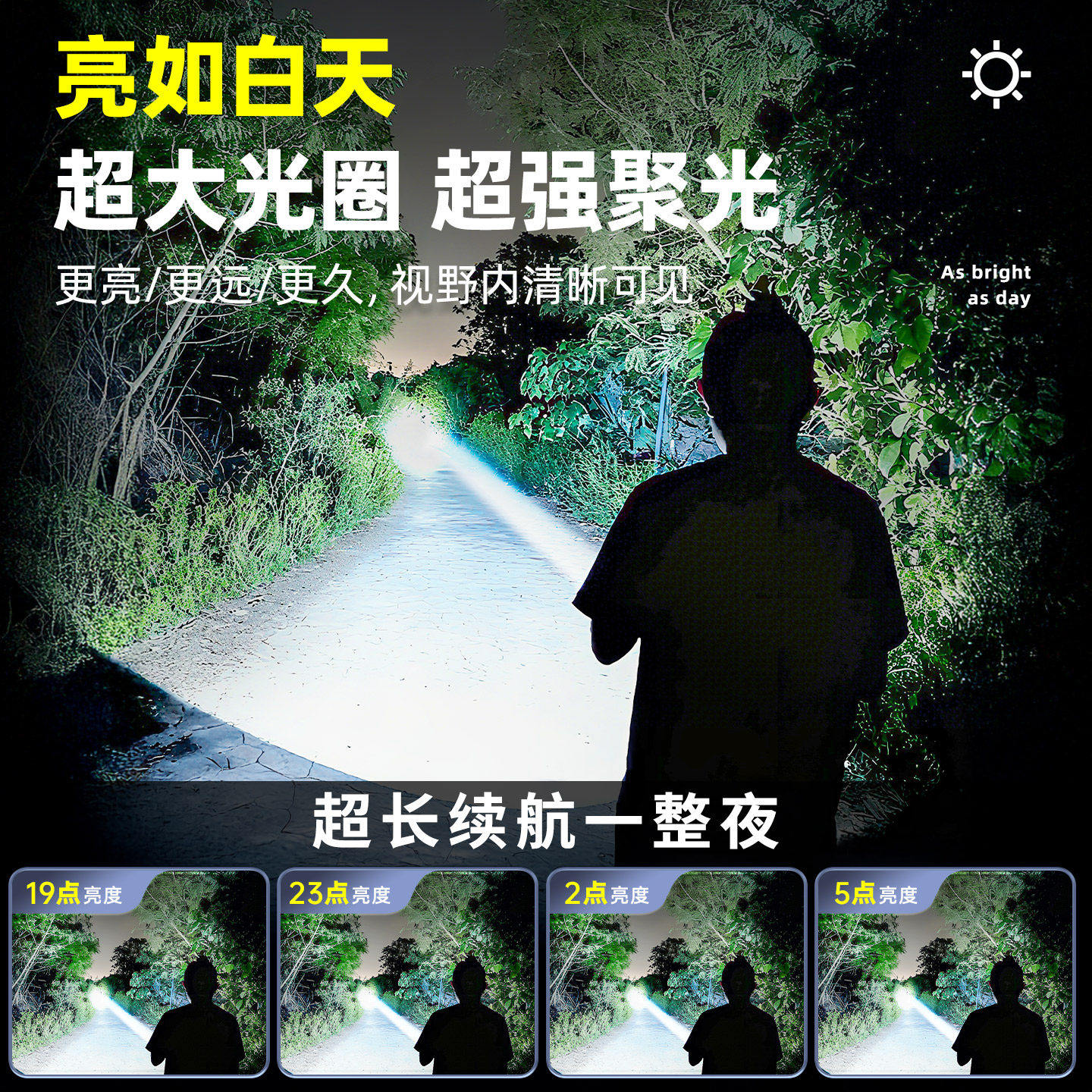 小野人手电筒2025新款强光户外充电超亮远射超长续航小型便携家用