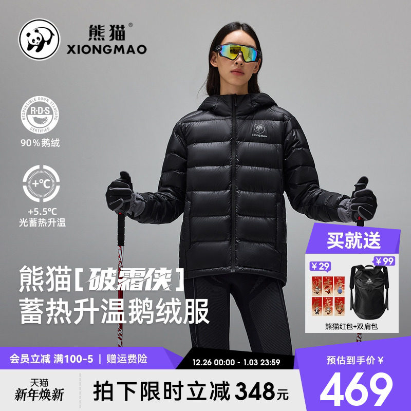 熊猫羽绒服女款轻薄2025秋冬新款鹅绒防风保暖抗寒棉服连帽外套
