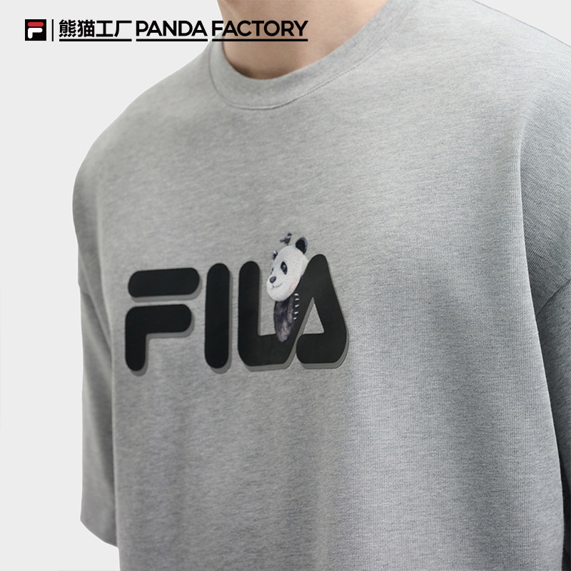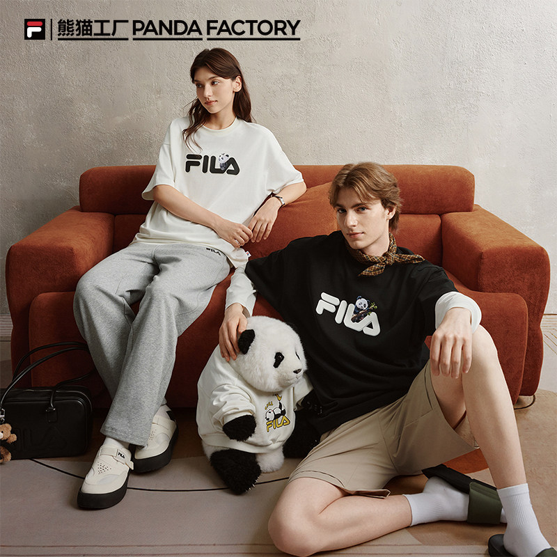 FILA斐乐熊猫刺绣短袖T恤情侣2025秋新半袖宽松纯棉上衣女运动男