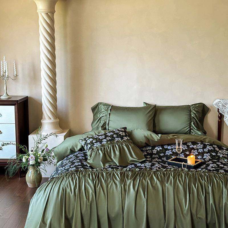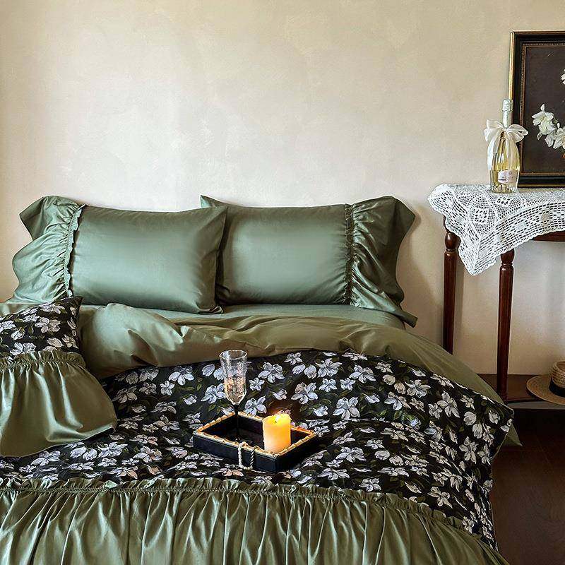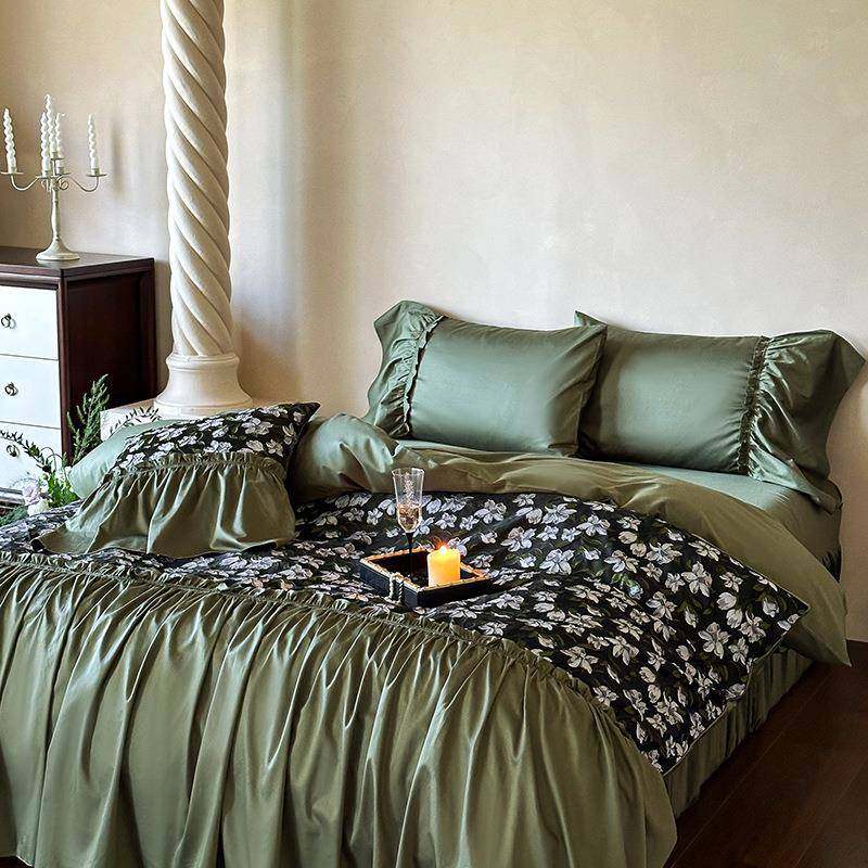 法式浮雕提花100支贡缎长绒棉纯棉四件套公主风全棉床单床裙床笠4