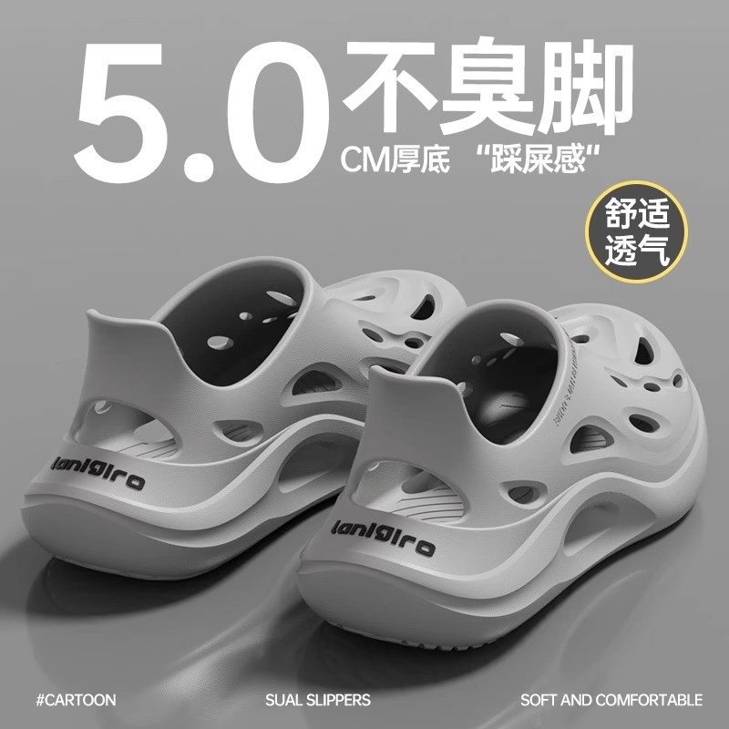 踩屎感洞洞鞋男款夏季外穿厚底防滑防臭沙滩凉鞋运动开车包头拖鞋