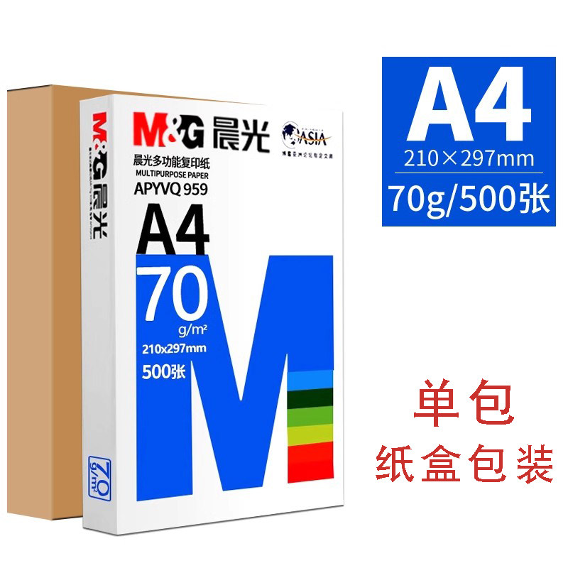 晨光A4纸打印纸复印纸70g白纸80g单包500张加厚双面打印白纸打印机a4纸草稿纸5包装整箱木浆办公画画用品包邮