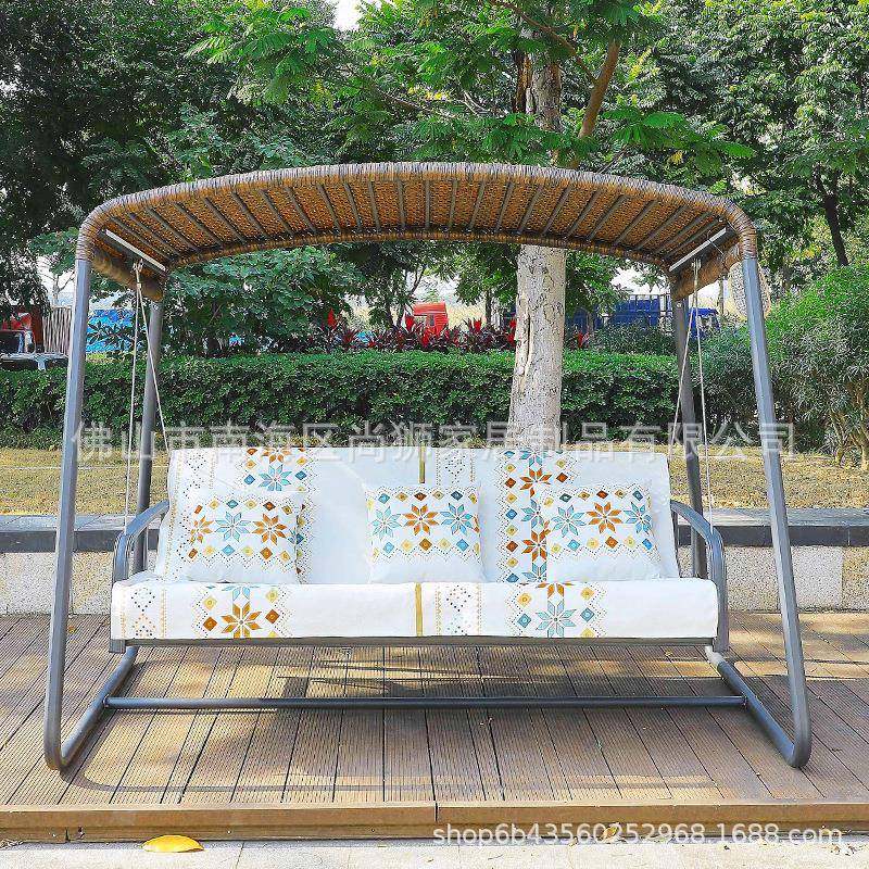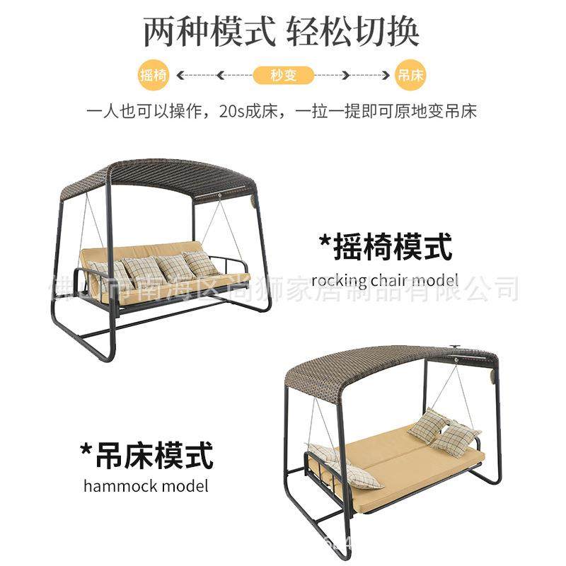 户外花园秋千吊床折叠座躺两用太阳能摇床铝合金庭院藤编铝制秋千