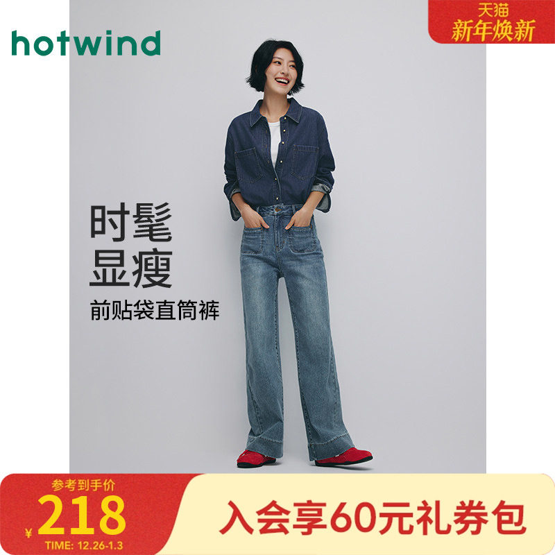 热风2025年秋季新款女士前贴袋直筒高腰牛仔裤挺括有型遮肉牛仔裤