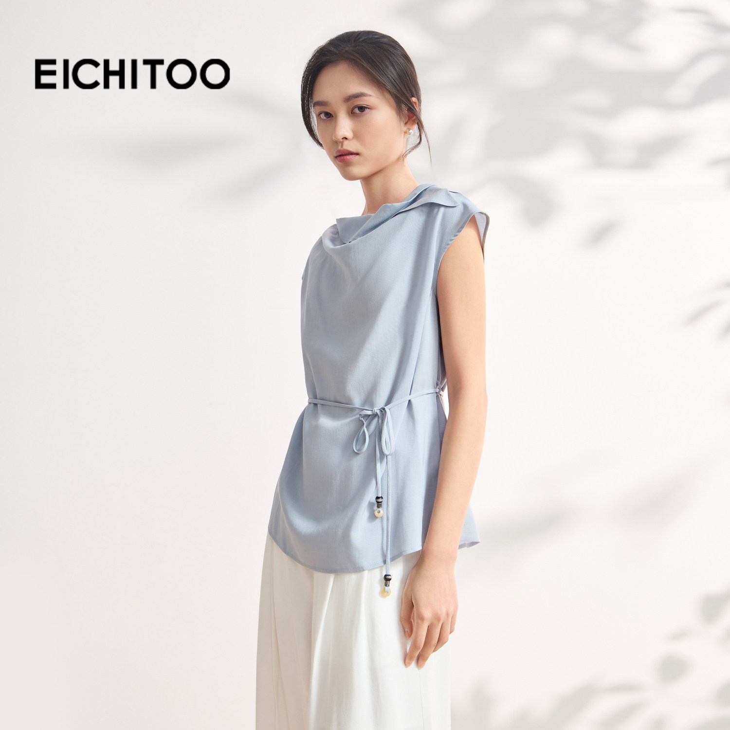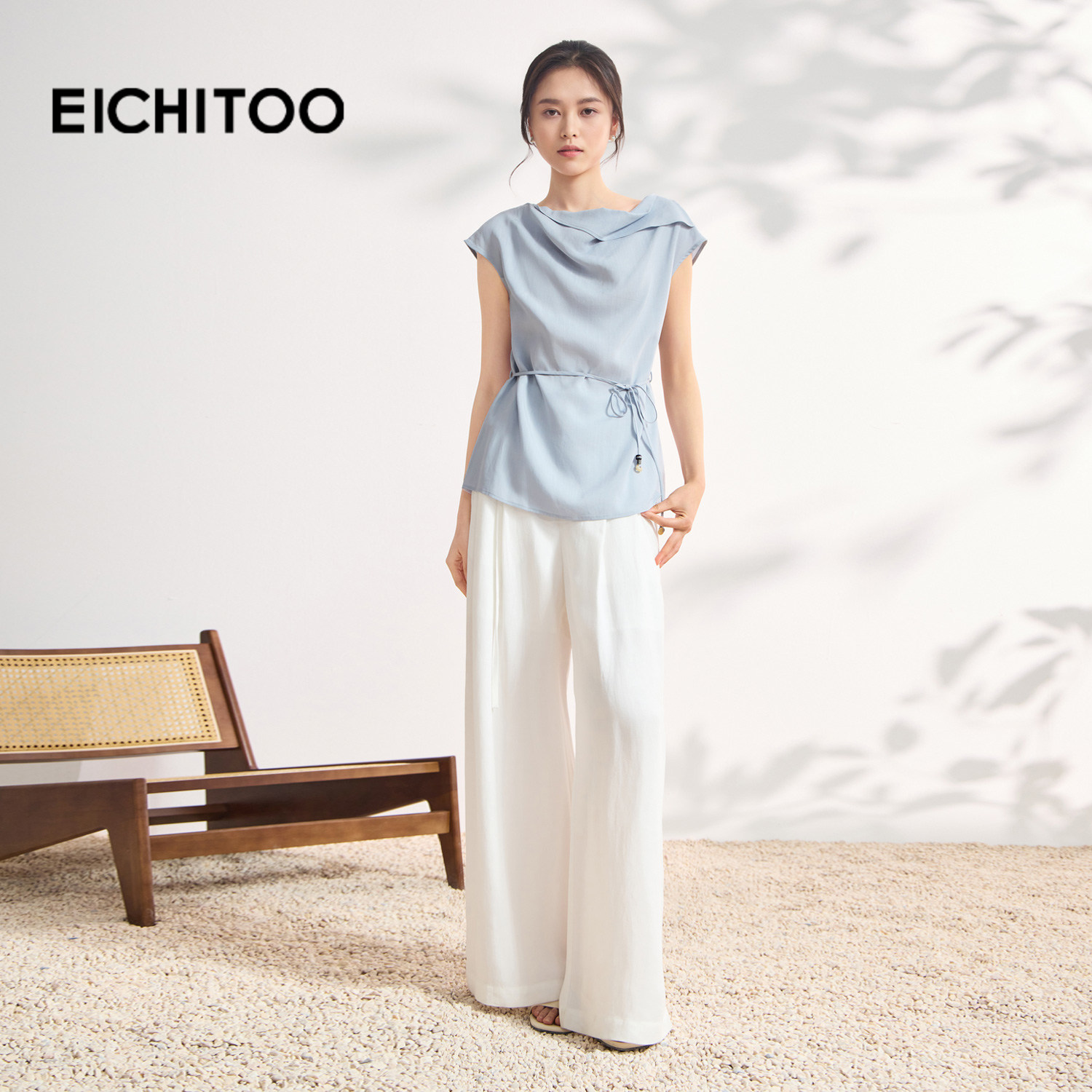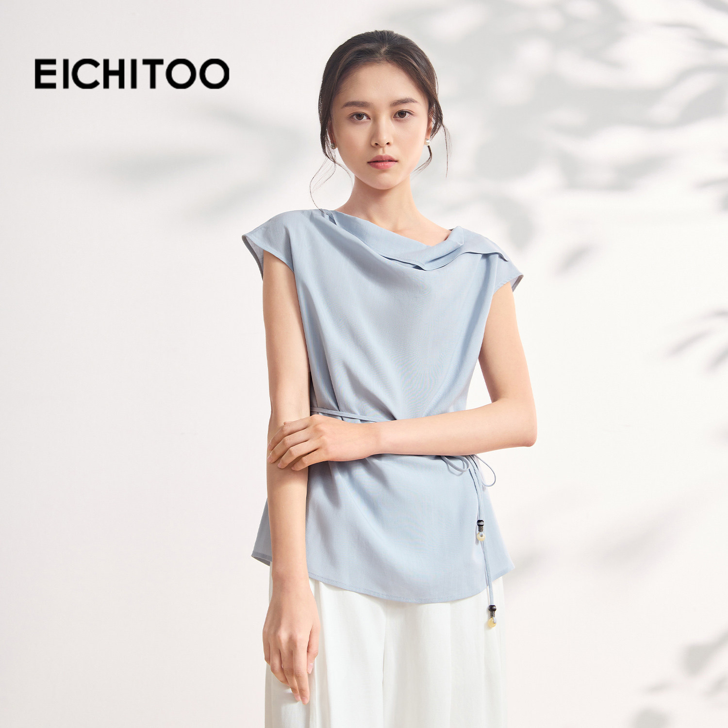 爱居兔静奢风莱赛尔亚麻荡领雪纺衫女2026年夏季新款收腰显瘦上衣